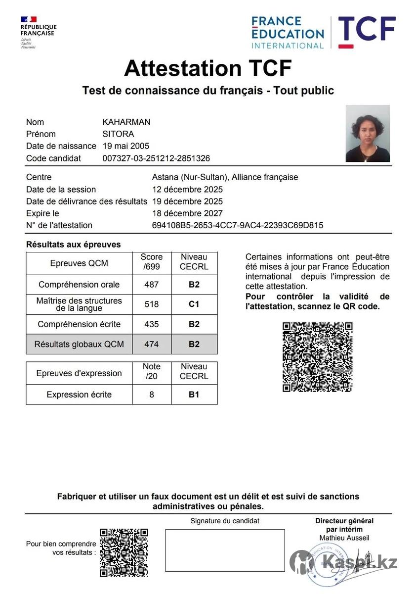 Французский с нуля для всех! Самый красивый язык в мире! Недаром сказано: увидеть Париж и умереть! Я проведу вас за ручку от мрака к свету сияющей Франции! Перед вами откроется целая новая вселенная и невероятные возможности и перспективы! Ваша жизнь изменится навсегда! | консультации, выбор университета во Франции, подготовка документов, мотивационное письмо | TCF Работаю с уровнями A0-B1 (начинающие и продолжающие). Что вы получите: • понятную систему без хаоса • разговорную практику с первых занятий • уверенность в языке • подготовка к TCF • помощь с поступлением во Францию (бакалавриат) • разбор мотивационного письма и документов Мой уровень французского - B2 (подтвержден TCF) Я прошла путь поступления и знаю требования изнутри Объясняю просто, логично и без перегруза Формат занятий онлайн: - индивидуально - мини-группы до 3 человек Наши цены: • индивидуально - 5 000 тг / час • группа (2–3 человека) - 4 000 тг / час Результат гарантирую!