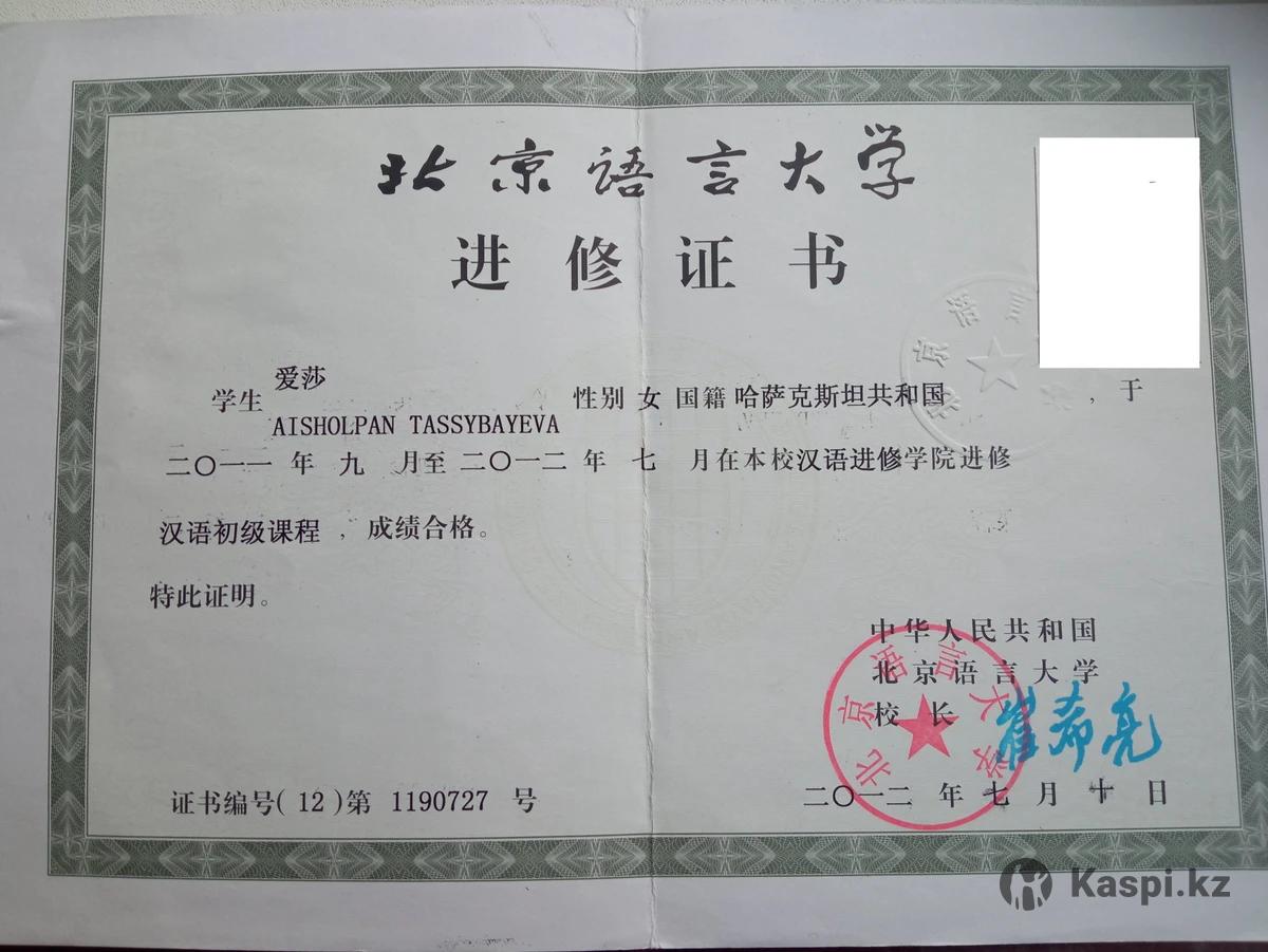 Здравствуйте! Возьму на подготовку HSK 2-3-4 девушку, которая изучает китайский, но возможно не хватает практики, словарного запаса, разговорной речи. Я сама начинала изучать китайский язык в Казахстане и понимаю, что этого не достаточно для изучения китайского, нужно больше практики и разговорной речи. Изучала китайский в институте Конфуция, потом получила грант в Пекинский университет языка и культуры на годовое обучение. Сдавала HSK3, HSK5. Но это было в 2011-2013 годах. Поэтому я сама хочу повторить программу на HSK3-4-5, чтобы сдать весной. И хочу чтобы со мной был еще один человек, который подтянет свои пробелы и возможно узнает что-то новое, и улучшит произношение. Будут созвоны в , все в простой форме. Будете изучать слова, читать диалоги, после буду готовить тесты к аудированию, разбирать больше диалогов, использование слов в других предложениях. Переводить и т.д. Если это интересно в таком свободном формате пишите сперва сюда в сообщения. Только девушки и женщины. Благодарю. За урок примерно 1000-1500 тнг. в зависимости сколько уроков в неделю. (Цена такая потому что сама сталкивалась, что хотела больше изучать, но цены были высокие для студентов). Поэтому подумала если сама буду идти повторять, читать поченьу бы не поделиться знаниями. Желательно уроки чаще. Тогда будет прогресс. Повторение, привычка каждый день делать задания, писать и изучать иероглифы и т.д. Онлайн. Со мной легко! Пишите в личку или на