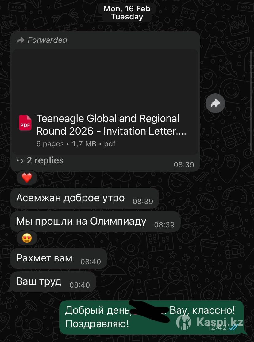 АНГЛИЙСКИЙ + КАЗАХСКИЙ | ПРЕПОДАВАТЕЛЬ НИШ | IELTS 7.0 Основная специализация: подготовка к НИШ/БИЛ и общий английский (взрослые/подростки) Опыт работы в НИШ (6-11 класс) - знаю западную систему IB Медицинский переводчик (знаю специфику Medical English) Корпоративный английский - преподавала английский юристам и врачам Общий английский и повышение уровня для подростков/взрослых 5+ лет преподавания IELTS 7.0 Высшее лингвистическое образование в ЕАГИ, г.Астана; Tallinn University, Estonia ЧТО ПРЕПОДАЮ: 📚 АНГЛИЙСКИЙ ЯЗЫК: ∙Подготовка к НИШ, БИЛ, международным школам, общий и бизнес английский ∙Beginner/Elementary → Upper-Intermediate ∙ Со мной ты заговоришь с первого урока, а грамматика с моим объяснением покажется легкотней! 📚 КАЗАХСКИЙ ЯЗЫК: ∙Подготовка к экзаменам НИШ, БИЛ ∙Помощь школьникам (от тройки к четверке/пятерке!) ∙Знаю требования НИШ изнутри ФОРМАТ: Индивидуальный онлайн урок: 6. 000 тг/час (один предмет) Групповые занятия: 4.000 тг/час(для подростков) Индивидуальный урок для взрослых(казахский/общий английский): 7.000 тг/час (2-3 места) Групповые занятия: 5.000 тг/час (для взрослых) МОИ УЧЕНИКИ: ✅ Поступают в НИШ, Зерде, БИЛ ✅ Повышают оценки по казахскому/англйискому ✅ Взрослые ученики/подростки повышают уровни с начального до Intermediate/Upper-Intermediate (средний и выше среднего) и набирают желаемые баллы на языковых экзаменах Комплексная подготовка от опытного преподавателя НИШ! 💪 📲 Пишите! Проведу консультацию, где определю уровень и дам понимание, как придти к цели.