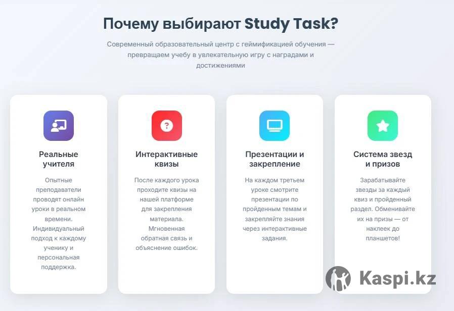 Онлайн-школа Study Task — английский язык для 5–11 классов с геймификацией 📌 Что получает ваш ребенок: Бесплатный доступ к курсу на платформе сразу после заявки. 2 пробных урока с преподавателем для определения уровня знаний и комфортного формата занятий. Ежедневные квизы по грамматике, лексике, чтению и аудированию — ученик получает звезды и достижения. Каждые 3 занятия — онлайн-урок с преподавателем для закрепления и систематизации материала. Геймификация: рейтинги, уровни и награды, которые делают изучение английского языка более увлекательным и мотивирующим. 💡 Оплачивая занятия, вы получаете не только уроки с преподавателем, но и доступ к интерактивной системе: ребенок тренирует английский каждый день, закрепляет материал через квизы и повышает уровень владения языком.