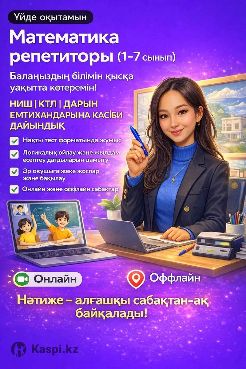 1 сыныптан 11 сыныпқа дейін математика ❗️Мектеп программасынан қалып кеткен оқушыларды жеткізу өз тақырыптарына ❗️Есептерді шығаруда оңай тәсілдер үйрену ❗️НИШ, КТЛ , РФМШ , Дарынға дайындау (5-6 сыныптарды) күніне 2 сағат 🏆 1000нан аса шәкірттерім НИШ , КТЛ , Дарын мектептеріне түсірдім