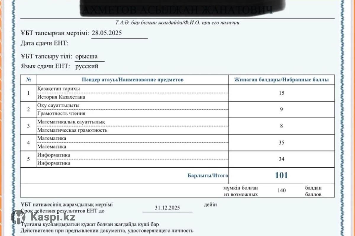 Меня зовут Балжан, окончила РФМШ им Жаутыкова (2014г, вуз - КазГУ, мехмат). Являюсь репетитором по математике, физике, информатике. Готовлю школьников 6-го, 7-го классов к поступлению в РФМШ. Провожу занятия по предметам индивидуально и в группах(3-5 учеников): 1) математика (5-11классы) 2) физика (7-11 классы) 3) математическая грамотность (ЕНТ и КТА) • * СОР, СОЧ по предметам (Алгебра, геометрия, физика) Я помогу Вам, вашему ребенку с восстановлением пробелов, решением контрольных работ и подготовкой к поступлению в РФМШ, НИШ, БИЛ И В другие школы; Опыт преподавания - более 8 лет. Стоимость занятий: Онлайн 1 час (60 мин) - 8000 тг Офлайн 1 час (60 мин) - 12.000 тг