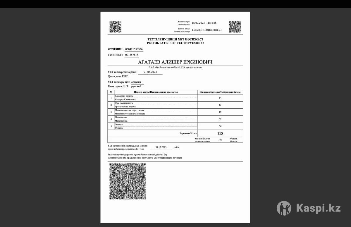 Репетитор по математике и физике (7–11 классы) Подготовка к ЕНТ, СОЧ/СОР Студент 3 курса физпеда ЕНТ — 115/140 Опыт — 2 года Онлайн занятия (Алматы) 3 раза в неделю Первое занятие — бесплатно :