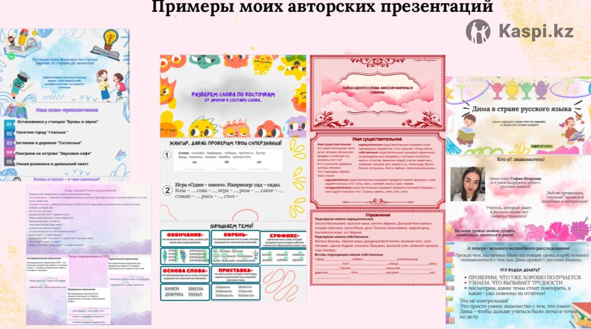 Репетитор по русскому языку. Помогу с домашними заданиями, подготовкой к СОР/СОЧ, восполню пробелы в школьной программе. На уроках — сначала понятная теория, затем практика, творческие задания и домашние задания для закрепления. Формат — только онлайн через Google Meet. Время подбираем вместе, работаю с 9:00 до 00:00 (учитываю разные часовые пояса). Стоимость занятий: Пробный урок — 1500 тг (25 мин) Разовое занятие — 3500 тг (60 мин) Абонементы 1.2 раза в неделю — 8 уроков × 60 мин = 25 000 тг Экономия 3 000 тг по сравнению с разовой оплатой. 2.3 раза в неделю — 12 уроков × 60 мин = 36 000 тг Экономия 6 000 тг. 3.Интенсив — 5 раз в неделю × 60 мин (20 уроков в месяц) = 55 000 тг Экономия 15 000 тг. Запишитесь до 1 сентября — скидка 10% на первый месяц. Пишите в 8777337&9512— на звонки не отвечаю!