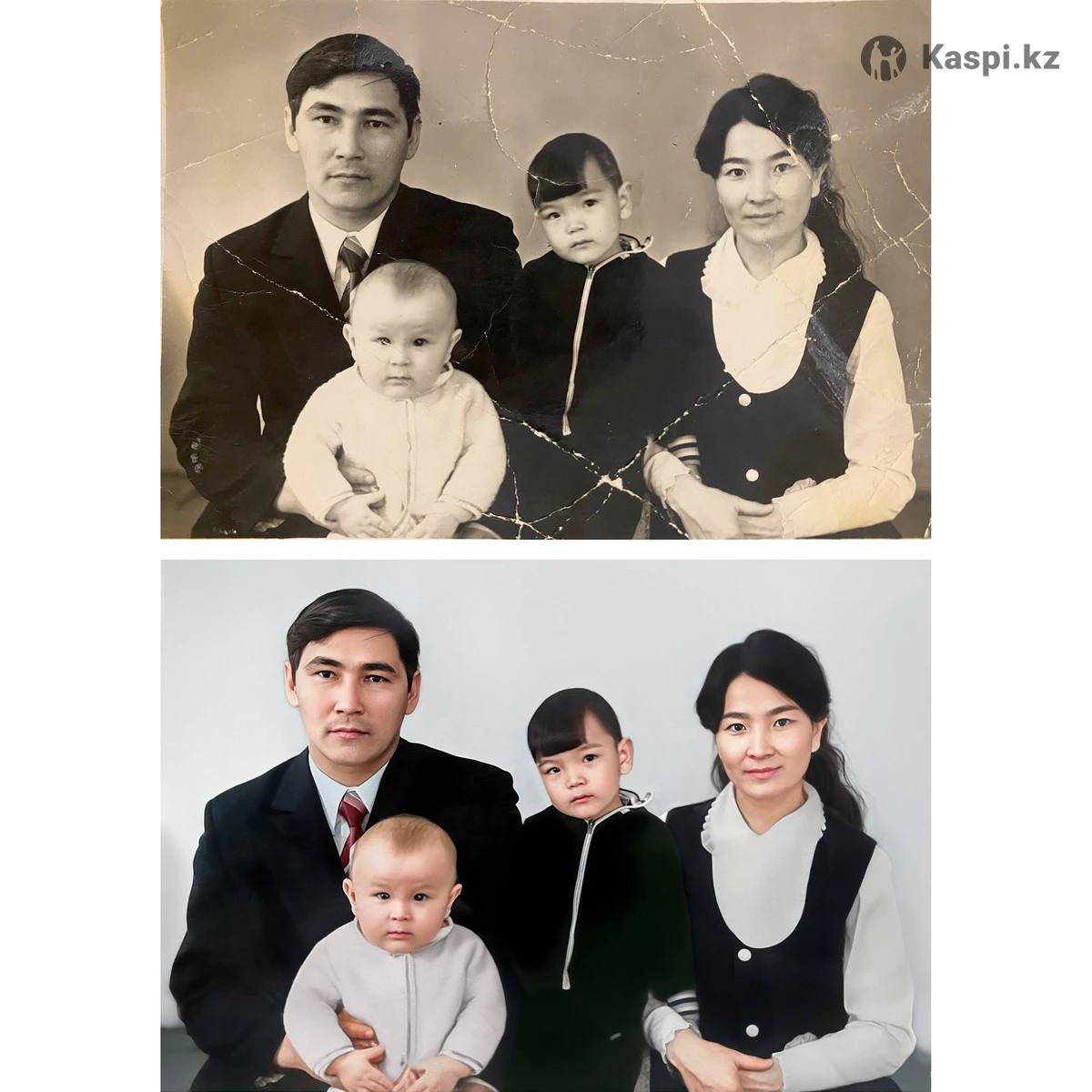 Доброго времени суток! Предлагаю услуги реставрации старых фотографий. Стоимость работы от 2500 тг., зависит от состояния фото (царапины, заломы, различные повреждения, выцветание), количества людей и объектов на фото. За отдельную плату сделаю раскраску (колоризацию) черно белой фотографии. Цена колоризации от 2000 тг. От вас требуется фотография в электронном виде - можно снять на телефон либо сделать скан. Работаю онлайн через интернет. Оплата на каспи или карту после работы.