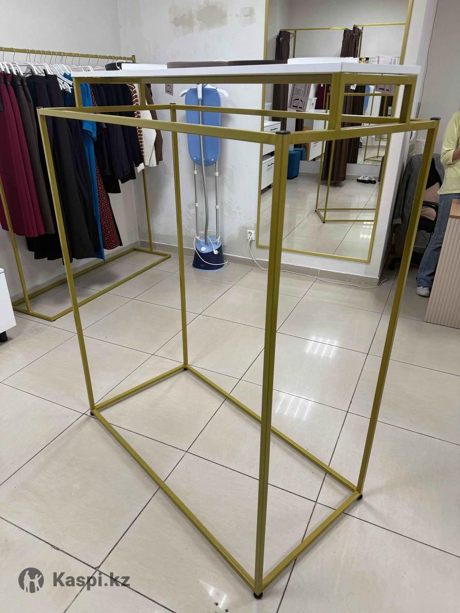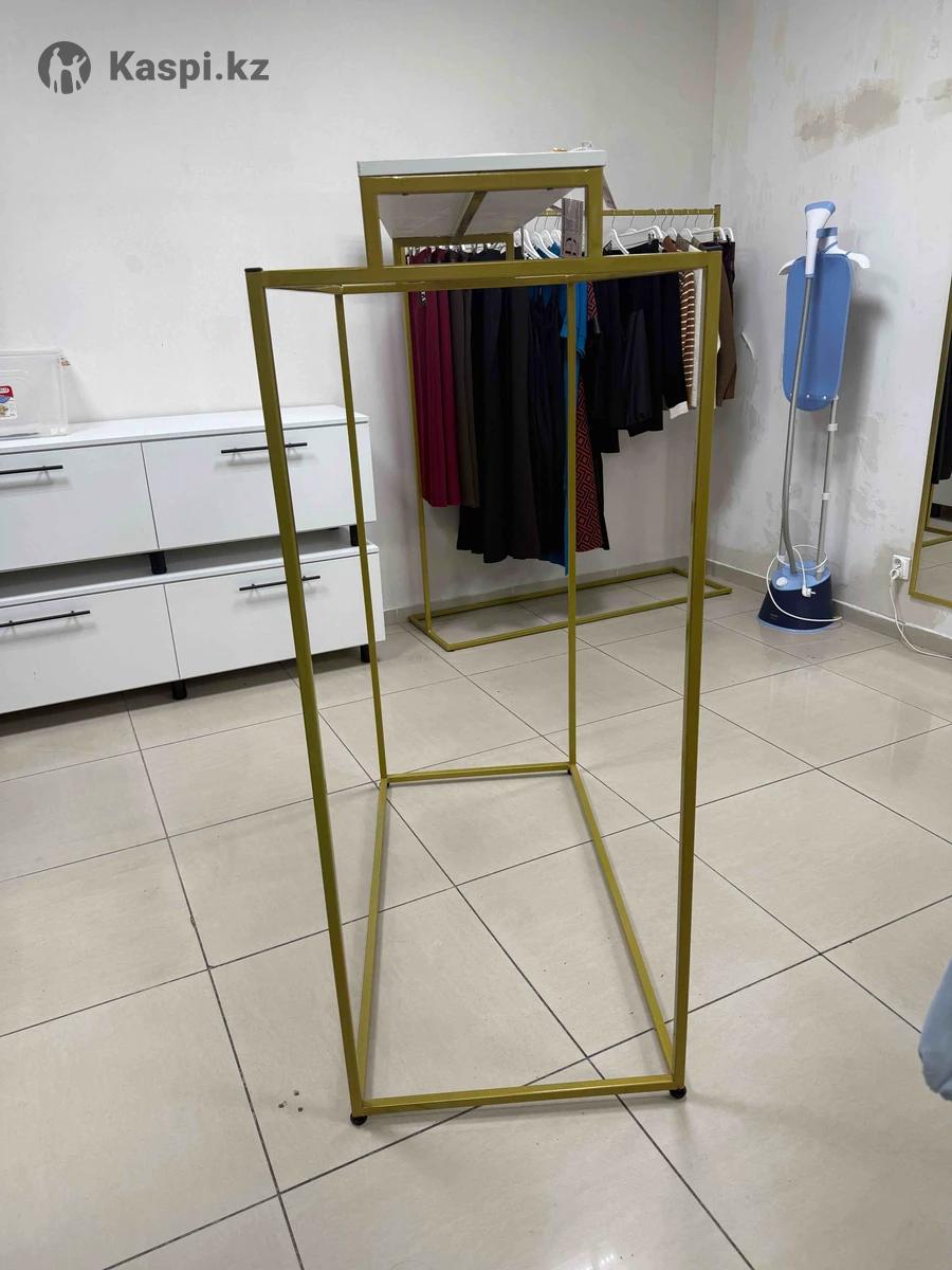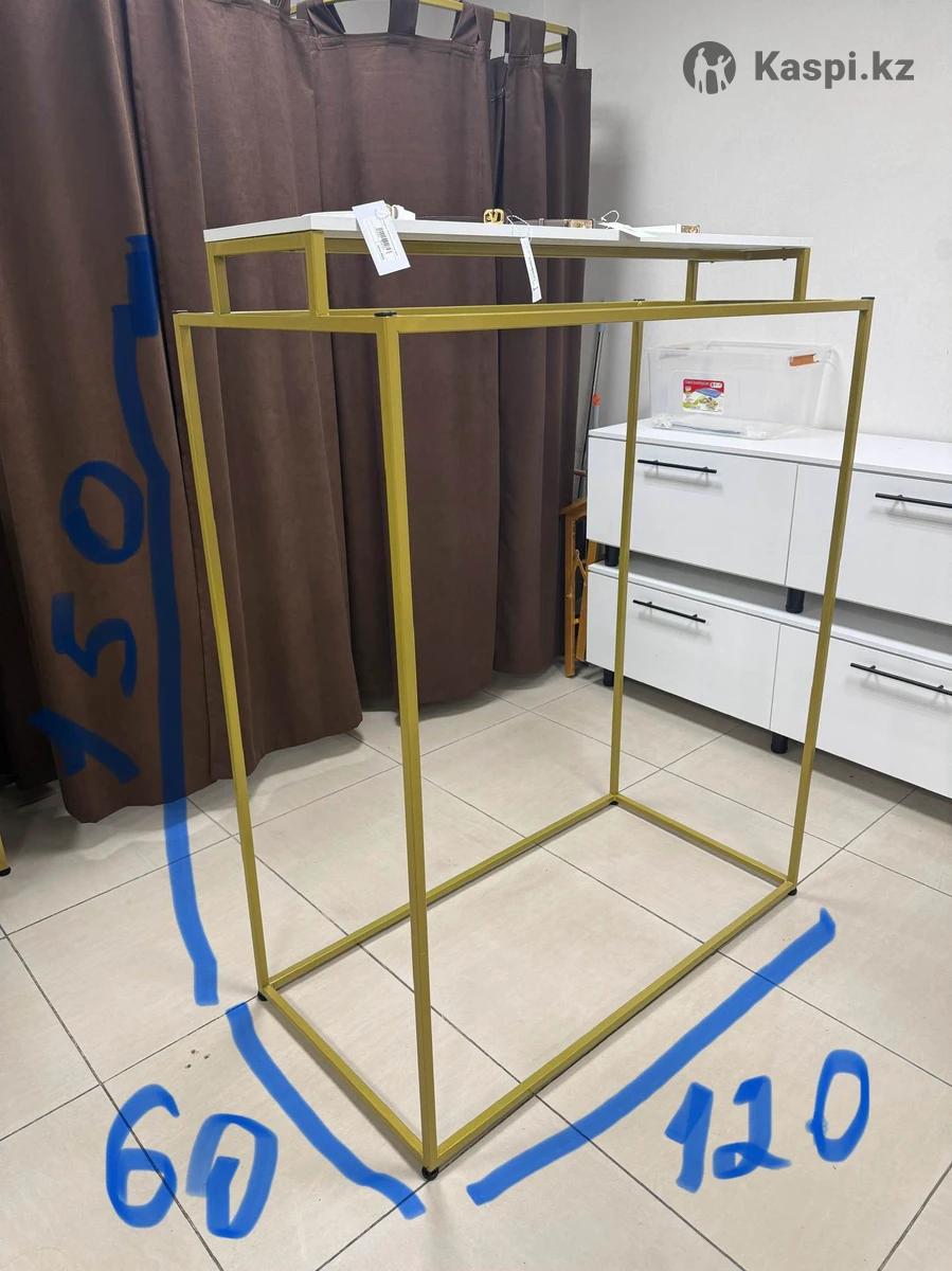 Продам рейл для одежды , новый , размеры на фото, 120см длина 150 см высота, цвет золото, сверху есть полка.