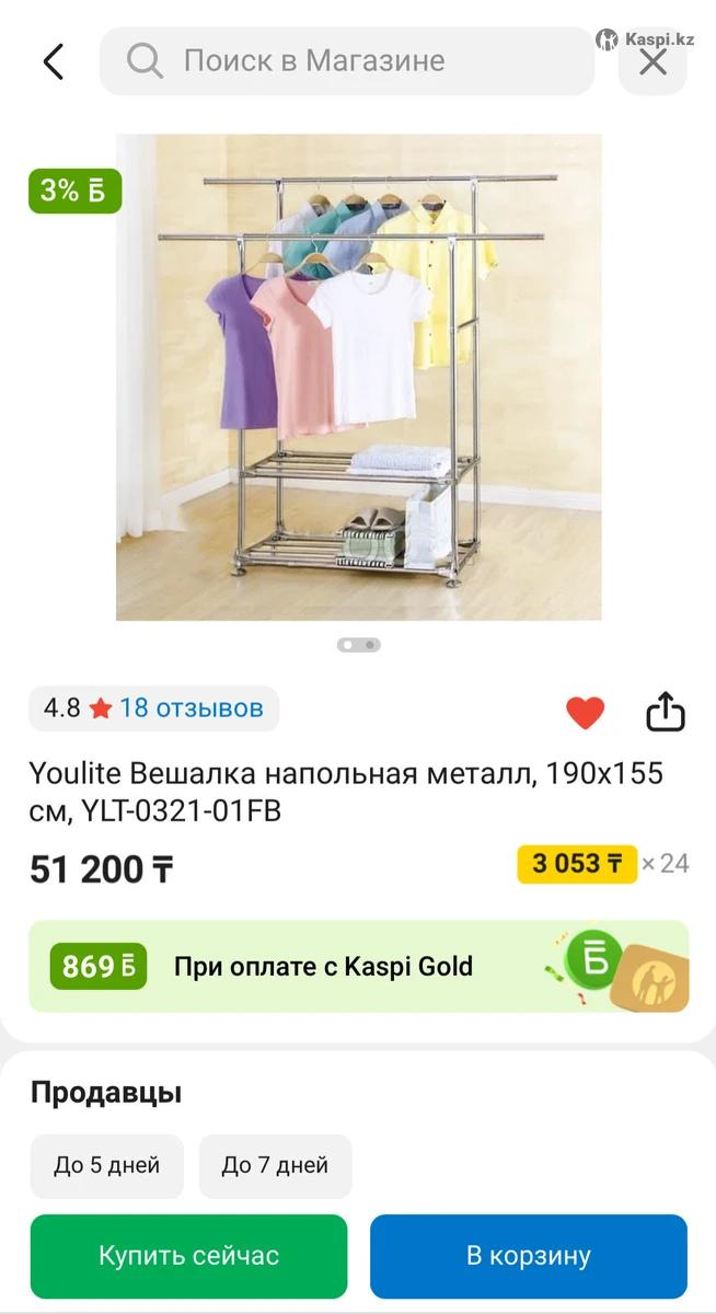 Вешалка напольная, рейл, рейл для одежды или для офиса. Высококачественная вешалка, не шатается, не прогибается под большим количеством одежды. Из хромированного металла, как трубы, так и соединительные элементы вешалки. Цена на каспи на скриншоте. Использовали, но в идеальном состоянии, все в комплектации, но без коробки, отправлю подробную инструкцию по сборке. Материал: нержавеющая сталь Покрытие металла: хромированное Ширина: регулируемая от 120 до 190 см в 2 ряда Глубина: 49 см Высота: 155 см Максимальная нагрузка: 80 кг