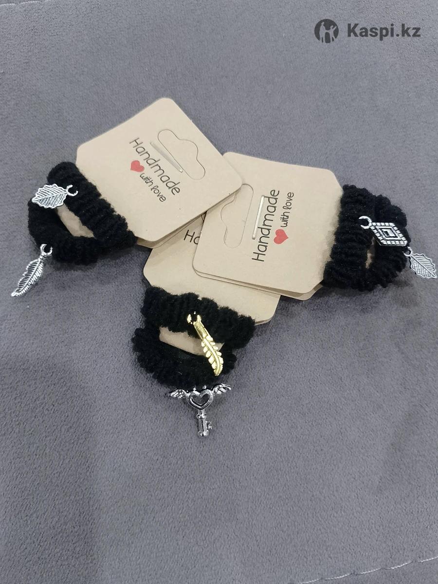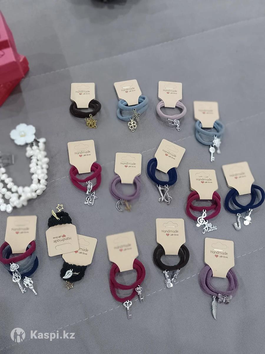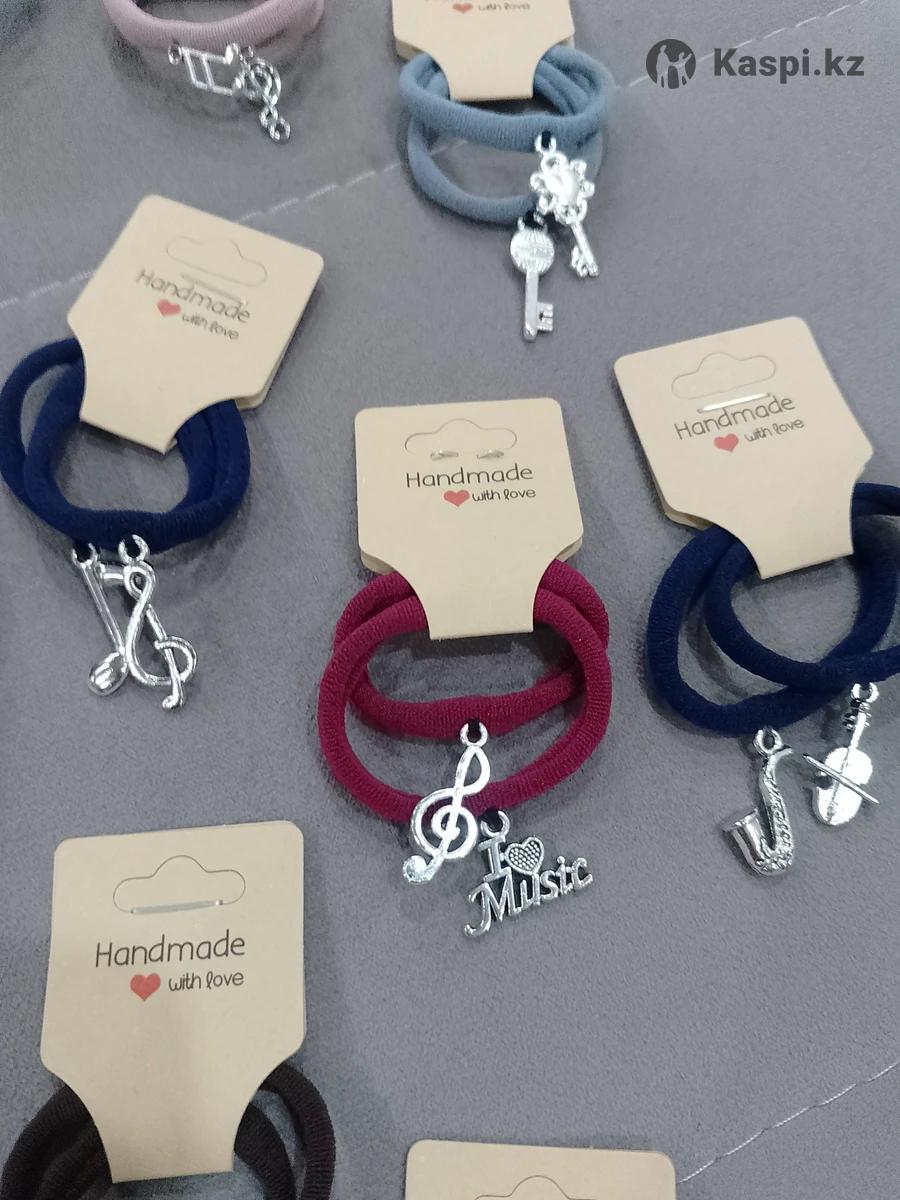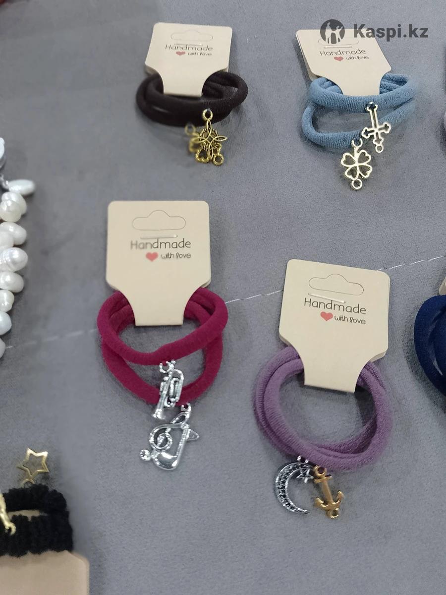 Резинки для волос с разными металлическими фигурками. Больше подходят для девочек школьниц. 4 штуки 500тг.