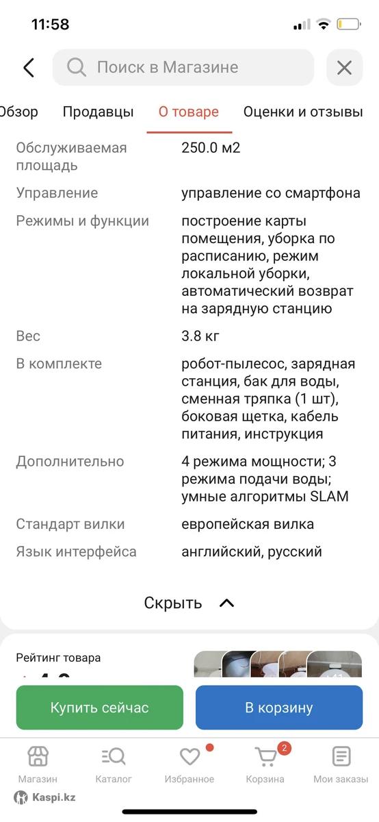 Прежде чем купить этот робот пылесос я посмотрела очень много обзоров, консультировалась с продавцами в магазине, советовалась со знакомыми-потребителями. В итоге выбрала эту модель и ни разу не пожалела пока не подросли мои двойняшки. Сейчас они все время по дому разбрасывают игрушки и другие вещи. Поэтому стало неудобно им пользоваться. А так пылесос отличный, качественный, пылесосит и протирает пол одновременно. Думаю фирма дрим не нуждается в рекламе, обзоры можете посмотреть на просторах интернета. Состояние пылесоса отличное. Можете приехать и посмотреть, находится на пересечении Тауелсиздик-Момышулы.