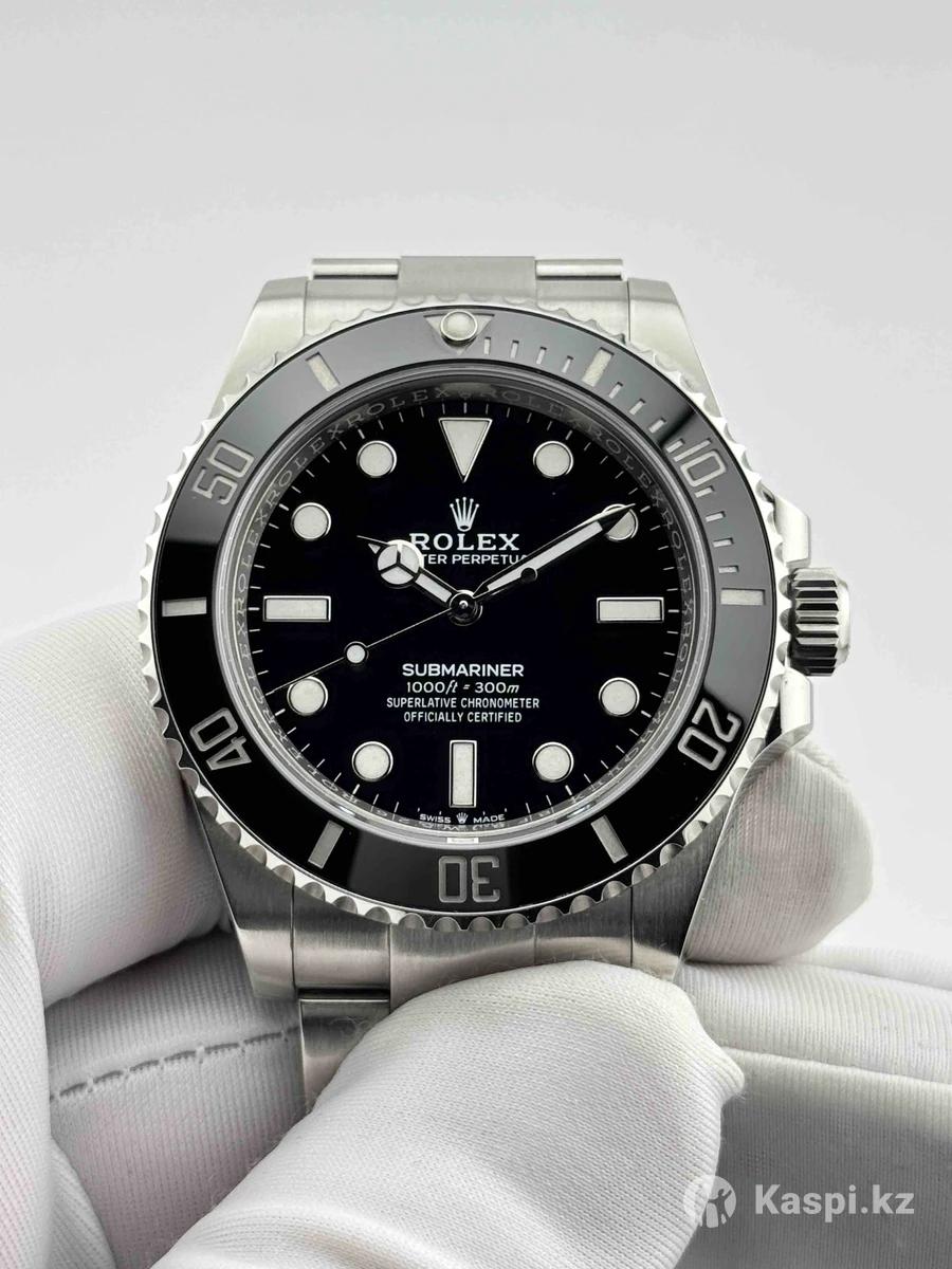 Rolex Submariner No Date Коллекция: Submariner --- Тип механизма: Автоматический Тип: Классические --- Функции: Часы, минуты, секунды Материал корпуса: Нержавеющая сталь --- Запас хода: 70ч Водонепроницаемость: 300 м --- Калибр: Rolex 3230 Диаметр корпуса: 41 мм --- Материал ремешка: Браслет из нержавеющей стали Стекло: Сапфировое --- Комплектация: Полный комплект Цвет циферблата: Черный --- Состояние: б/у