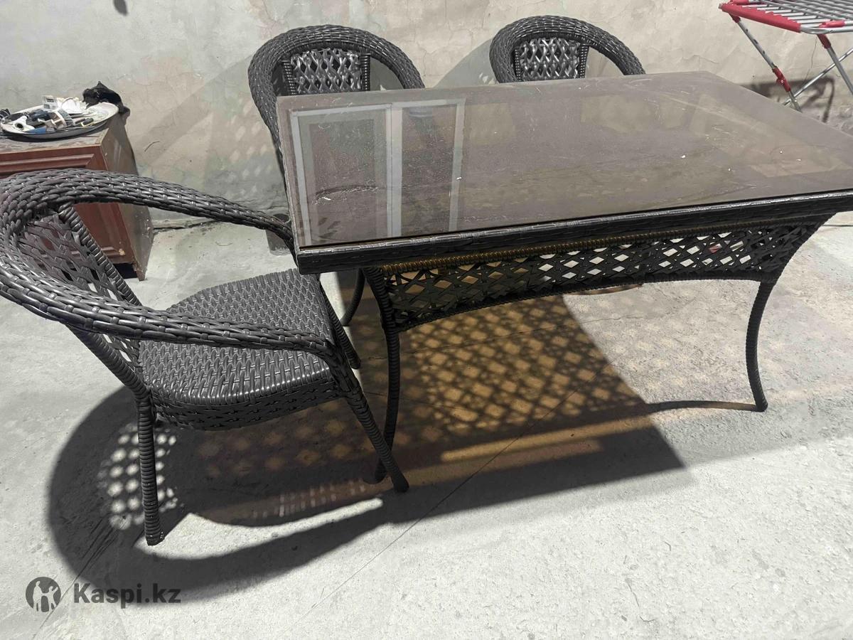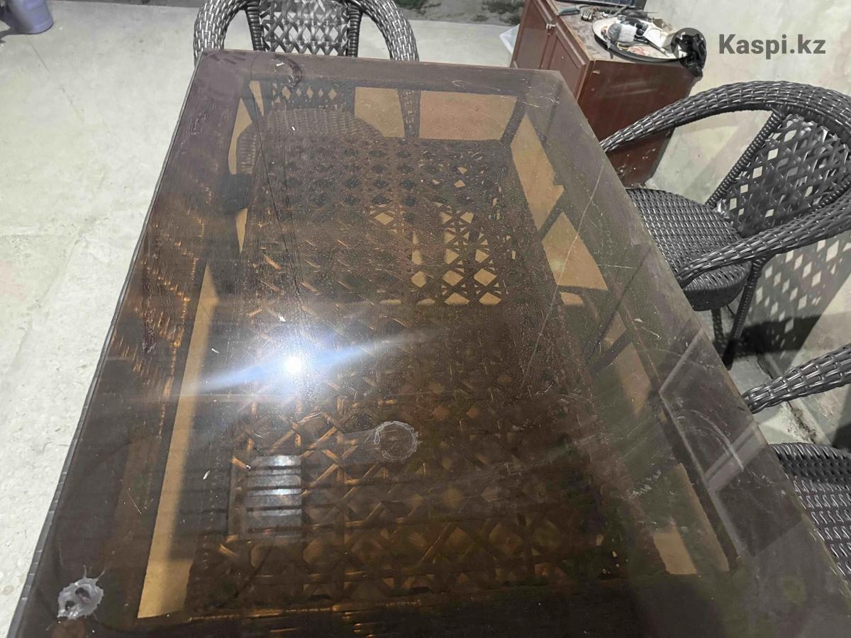 Комплект полный стол и шесть кресел Целый. Стекло целое