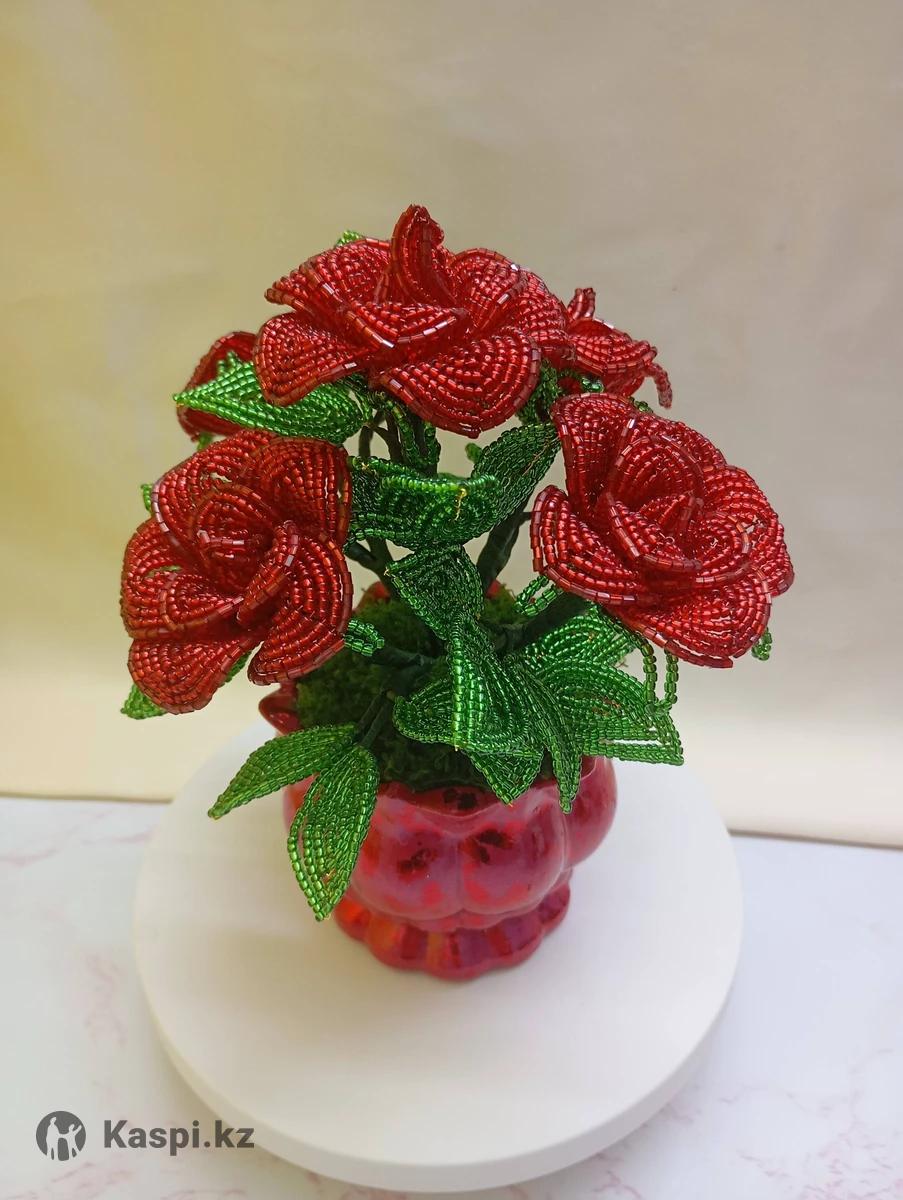 Изысканные розы из бисера — полностью ручная работа. Каждый лепесток и листочек выполнены с вниманием к деталям. Цветок не увянет и будет долгие годы радовать вас или вашего близкого. Отличный подарок на любой праздник! Цена: 5500 ТГ Высота :19-20см. По всем вопросам — пишите или звоните.