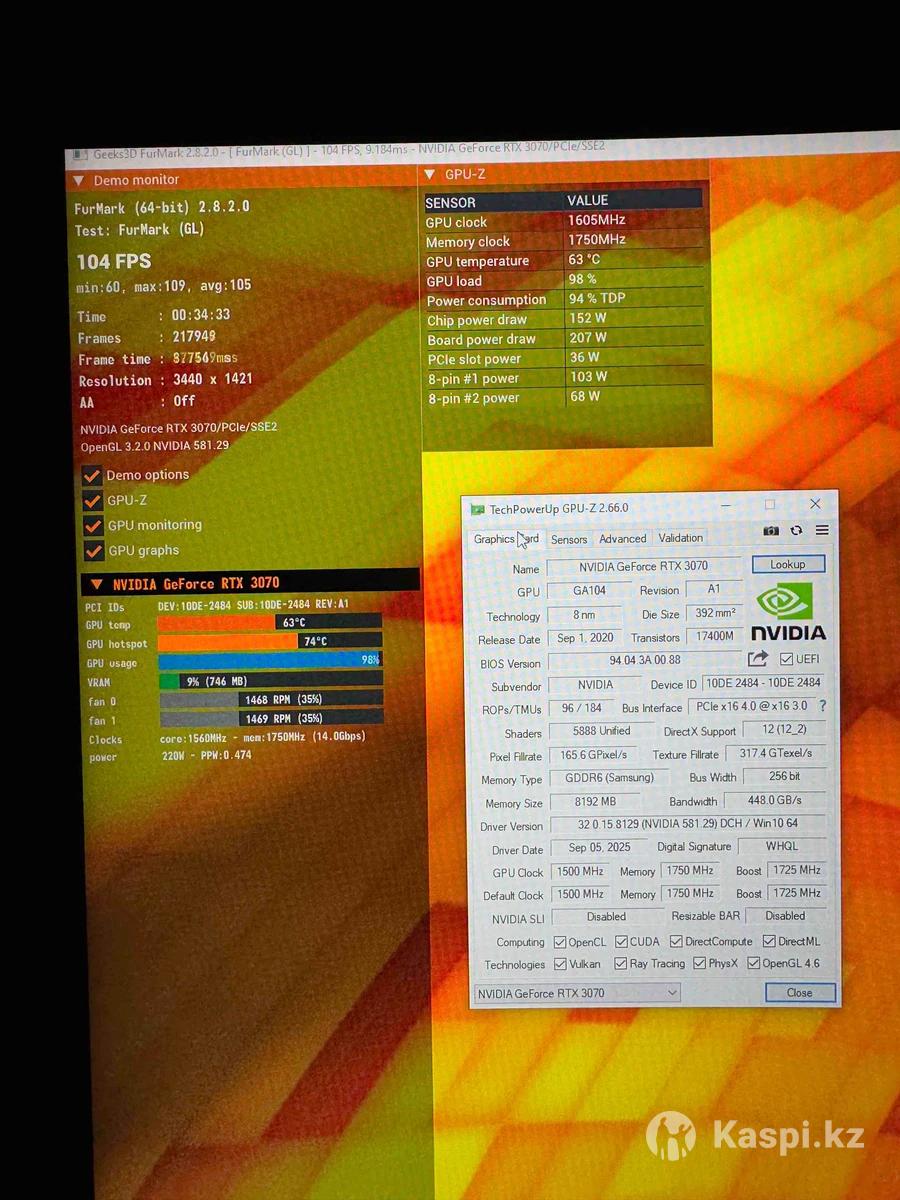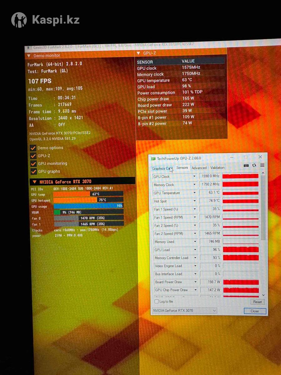 RTX 3070 8GB Gainward 10шт Карточки в идеальном состоянии, почищены от пыли, без царапин. Температуры супер, не греются( фото прикреплено ). Цена: 145.000тг, торг есть Город Алматы