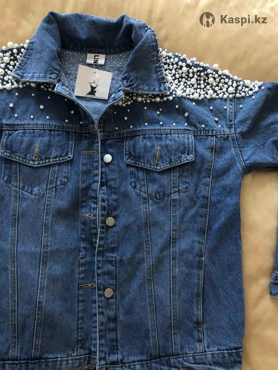 Рубашка джинсовая , украшена жемчугом