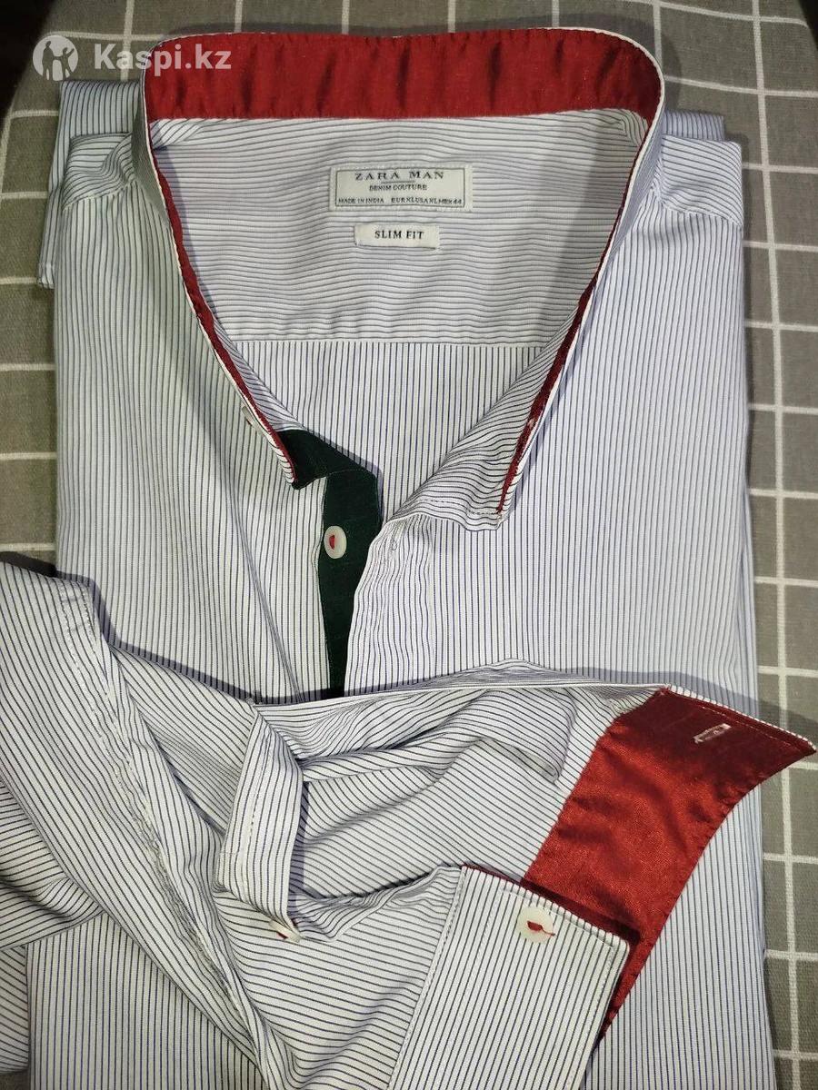 Фото 2. Рубашка мужская классическая Benezzo. Новая, в упаковке. Slim fit, размер XL, ворот 43-44, бледно-фиолетовая. Длина рукава около 73 см (обычно длина рукава 67, что для большинства высоких мужчин очень коротко) здесь этой проблемы нет! На рост 1,86-1,96 см. Подробные размеры ниже. Цена 12000 Фото 3. ZARA MAN, Индия, хлопок. Slim fit, размер XL, ворот 44. На рост 1,86-1,96 см. Длина рукава 70 см, плечи – 48-50 см, длина рубашки – 80 см, ширина – 56 см. Планка зеленого цвета, ворот изнутри и манжеты рукавов изнутри красные. Состояние рубашки отличное. Цена 12000