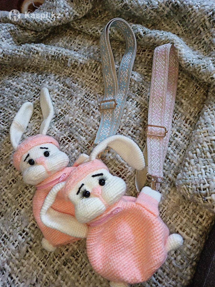 Рюкзачок "зайка". Можно совместить с новогодним подарком, положив во внутрь вкусняшки. Такой вы точно не купите нигде! Цвет нежно розовый, ближе к персиковому.