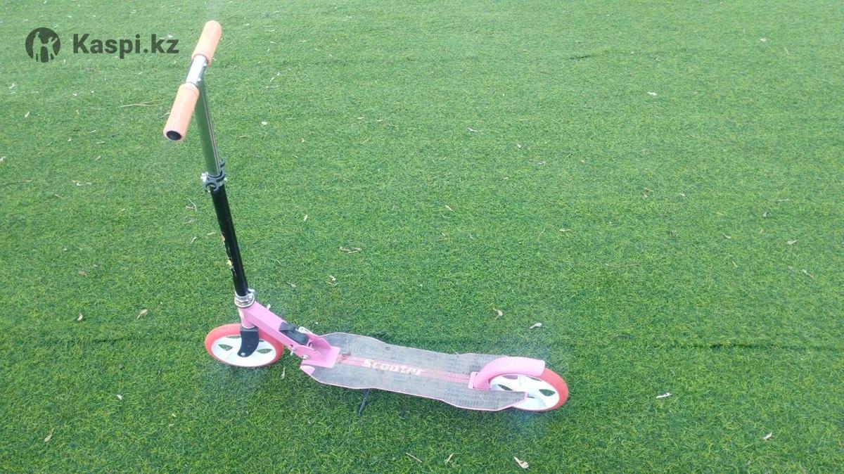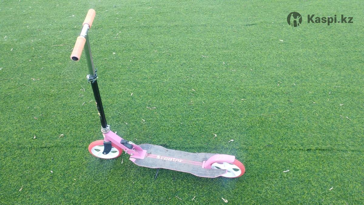 Тип: Складной двухколёсный. Материал: рама самоката изготовлена из стали. Колеса: оснащен двумя полиуретановыми(РU)колеса диаметром 200мм. Подножка: длина подножки 52см.