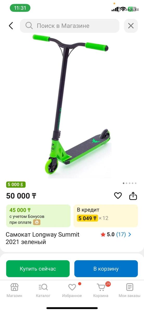 Самокат SUMIT ПОЧТИ ЧТО НОВЫЙ использовал 5 месяцев, царапин есть как так он трюковой а так все идеально ходьба даже не слышно Поднимает до 110кг все четко работает в каспистоит 50к