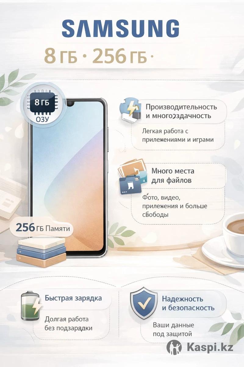 Samsung 8 ГБ / 256 ГБ (RAM Plus до 16 ГБ) Цена: 85 000 тг Бывает так: берешь телефон — и просто пользуешься. Без нервов, без подвисаний, без мысли «пора менять». Вот это как раз он. Шустрый Samsung с большим запасом памяти — открываешь приложения, листаешь видео, снимаешь, играешь, и он не просит паузу. Работает спокойно и уверенно. Почему он реально удобный: •8 ГБ оперативки + расширение до 16 ГБ — не задумывается •256 ГБ памяти — фото, видео, приложения, все помещается •Экран яркий, глаза не устают •Аккумулятор держит достойно, не живет у розетки Пользовался аккуратно, не убивал, не топил, не ронял. Все функции работают как должны. Продаю не потому что плохой — просто обновляюсь. Телефон честный, без сюрпризов. Цена: 85 000 тг Разумный торг уместен. Пишите, отвечу нормально, без пропаданий.