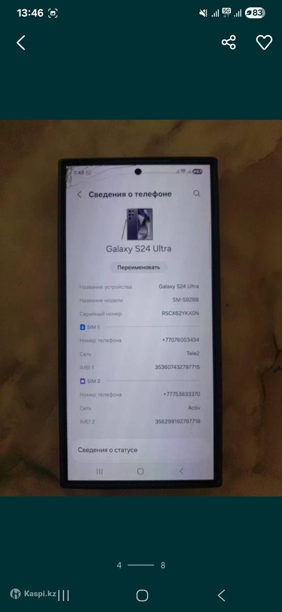 Samsung Galaxy S24 Ultra 512 Gb 5G. В идеальном состоянии минус чуть трещин верхний часть. 290к договорная