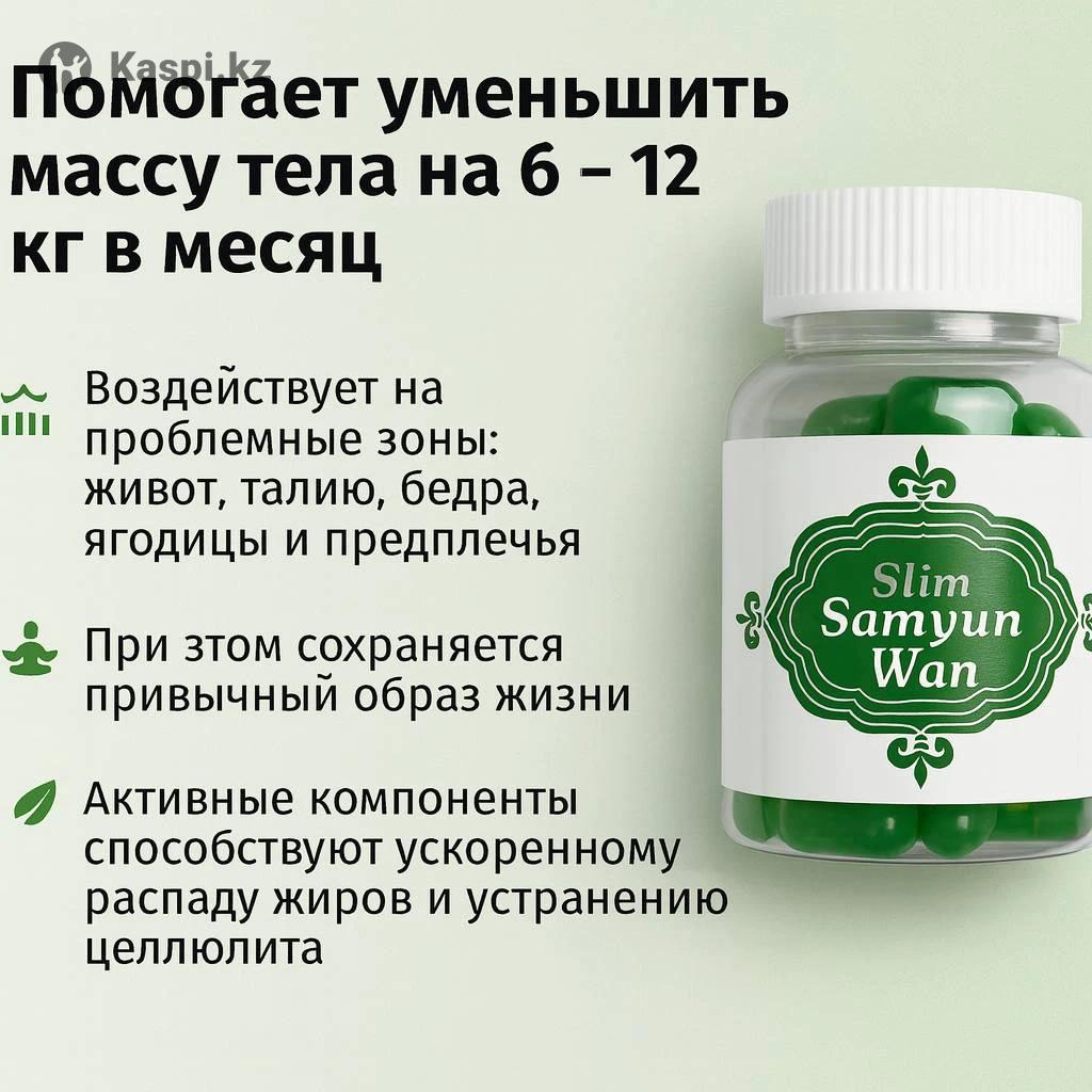 Капсулы для похудения "Самуин Ван Слим" (Samyun Wan slim) оригинал 100%. Форма выпуска: капсулы 30 шт Samyun Wan Slim - это правильная рецептура на основе растительных компонентов, позволяющая более эффективно бороться с лишним весом. Даже тем, кто не может устоять от соблазнов и любит вкусно перекусить. Действие: - Содействует сжиганию имеющихся жировых запасов - Удерживает образование новых жировых отложений - Тонизирует мышечную ткань - Уменьшает объемы в области талии, бедер, живота - Способствует снижению аппетита - Ускоряет наступление насыщения - Снижают стремление к потреблению жиров - Тормозят образование жира вокруг внутренних органов - Улучшают настроение при соблюдении диеты. Состав: Листья лотоса, конъюгированна линолевая кислота, трутовый гриб, Витамин Е, Химотрипсин и другие компоненты. Применение: В первой половине дня по 1 капсуле за 30мин до принятия пищи запивать теплой кипяченой водой. В течении дня пить 1.5-2л воды. (30мл воды на 1 кг веса) ПРОТИВОПОКАЗАНИЯ: Индивидуальная непереносимость компонентов; Беременные и кормящие женщины (период лактации); Лица перенёсшие инсульт или инфаркт; Лица моложе 18 и старше 65 лет БАД не является лекарством. БАД это биологическая активная добавка (пищевая добавка). Свидетельство о государственной регистрации № K.Z.16.01.79.003 .E.514 от 28.11.2019 Серия №: 20200618 Не является лекарственным средством. Условия хранения: В сухом, прохладном, защищенном от света месте. Срок хранения: 36 месяцев