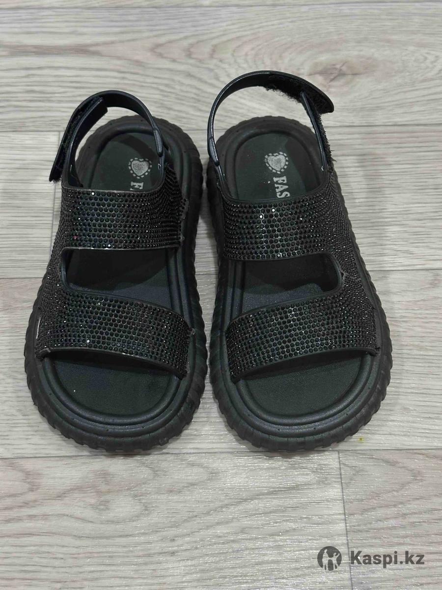 Сандалики резиновые со стразами, размер 26-27, надевали один раз , маловаты нам. Цена 1500 тенге