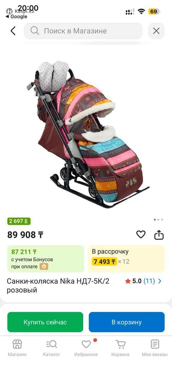 Санки коляска Nika в отличном состоянии, чистенькие, механизмы все рабочие Характеристики: —перекидная ручка — бампер — чехол для ног с молнией для удобного открывания — высокий складной трехсекционный козырек с меховой окантовкой — спинка регулируется до положения лежа — подножка для ног с регулируемым углом наклона — смотровое окошко для наблюдения за ребенком — муфта с оконтовкой мехом — сумка с кармашками для полезных мелочей — пятиточечный ремень безопасности — съемный прозрачный тент — колеса на полозьях для удобной транспортировки