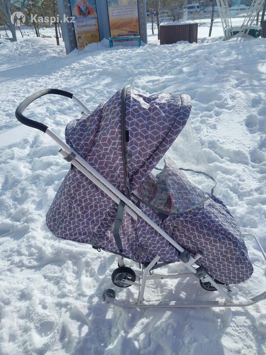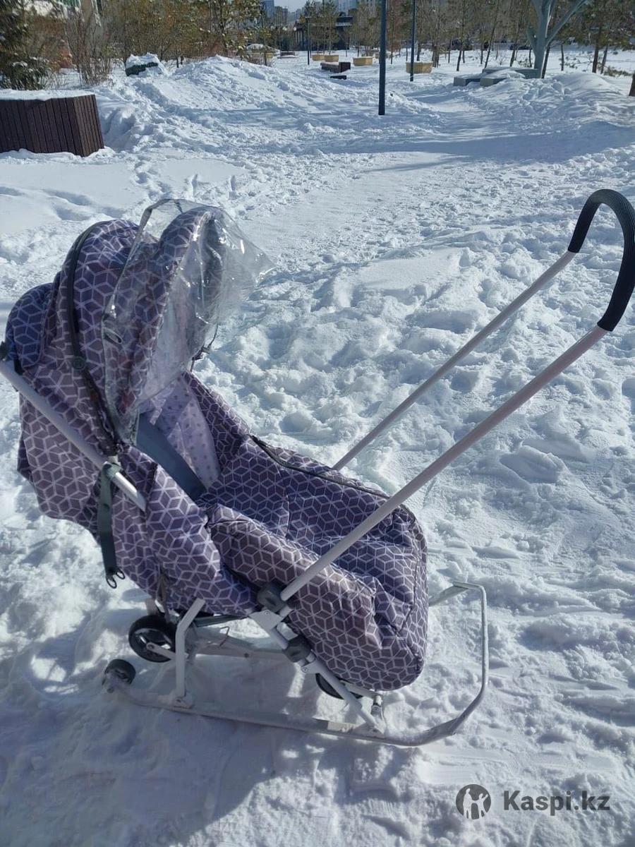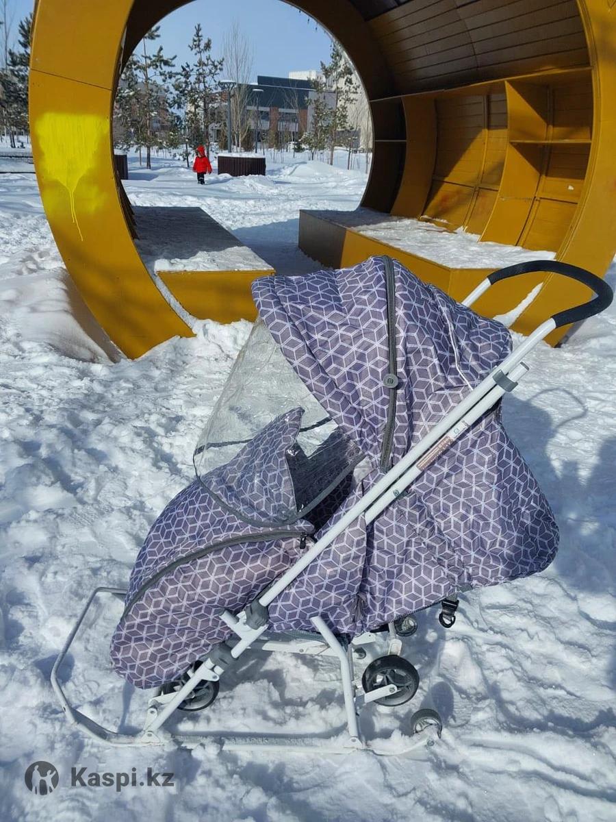 Санки - коляска. Удобно для посадки ребенка , удобный козырек закрывается от ветра и снега , ноги в тепле, пристегивается из Внутри, ручка на две стороны, можно передвигаться и при этом смотреть за ребенком и или наоборот отвлекать внимание ребенка по сторонам, при передвижении участков без снега переходить на режим колес. Удобно собирается при переносе, не занимает много места. Пользовались не много , но очень аккуратно, без повреждений, все чистенькое, самовывоз , торг.