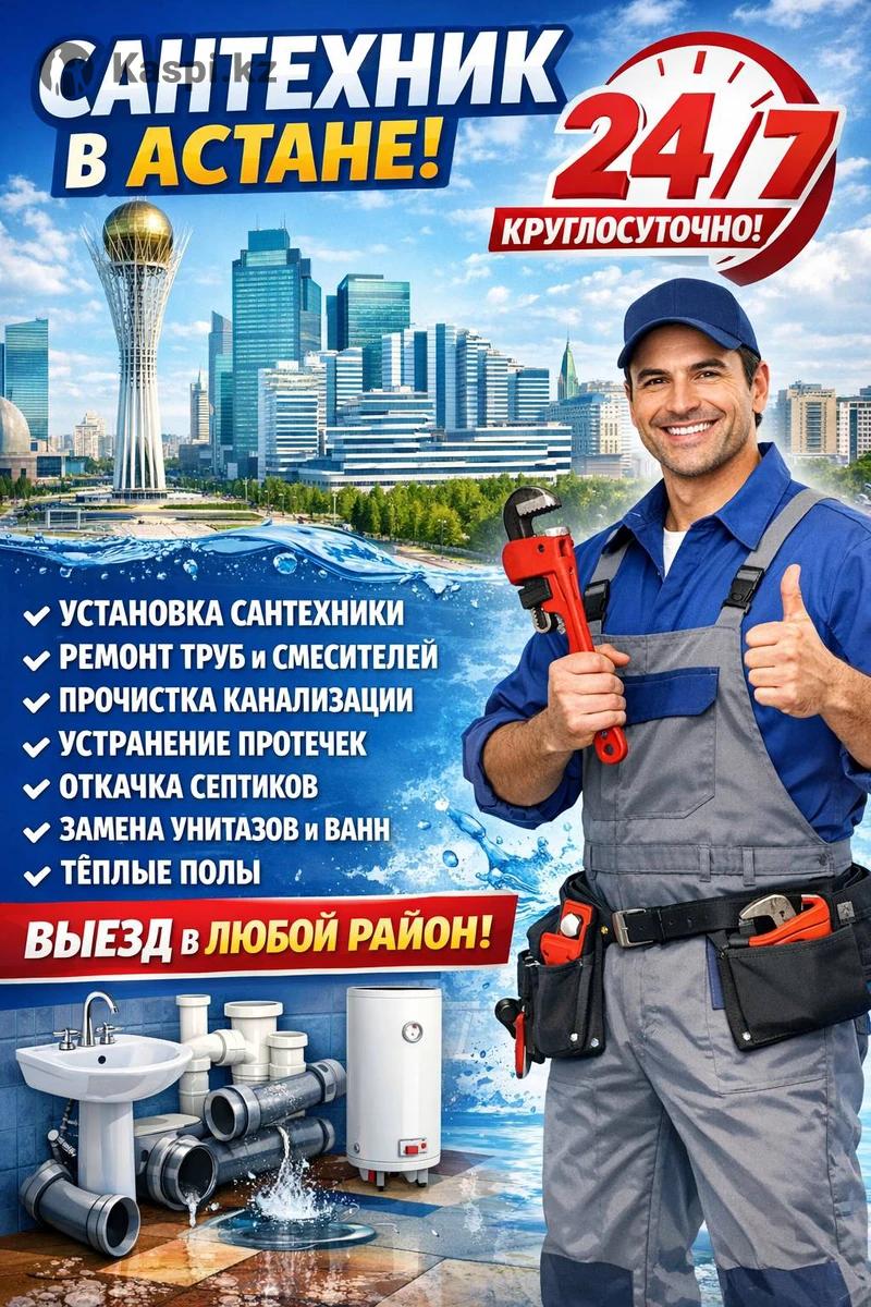 Сантехник в Астане — 24/7 без выходных! Работаем по городу Астана круглосуточно. Срочный выезд в любой район. Качественно, аккуратно, с гарантией. 🔧 Наши услуги: Установка и замена смесителей Установка и замена унитазов Установка ванн, раковин, душевых кабин Монтаж и ремонт труб (пластик, металлопластик, полипропилен) Устранение протечек любой сложности Замена стояков Установка бойлеров, водонагревателей Подключение стиральных и посудомоечных машин Установка радиаторов отопления Монтаж теплых полов Установка фильтров для воды Ремонт и обслуживание систем водоснабжения и отопления 💧 Срочные аварийные работы 🏠 Выезд в любой район 🕒 Работаем 24/7 💰 Доступные цены