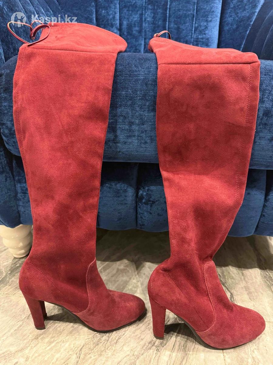 Сапоги ботфорты, натуральная замша, цвет бордовый, размер 36, новые, демисезон