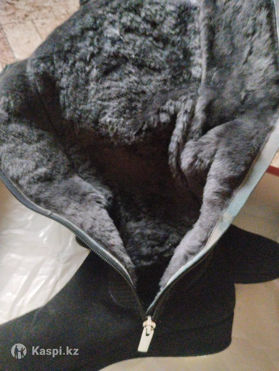 Натуральный замш с лазерной обработкой. Мех овчина. Одеты один раз на карпоротив. Объем голени 36 см. Сертификат соответствия имеется.