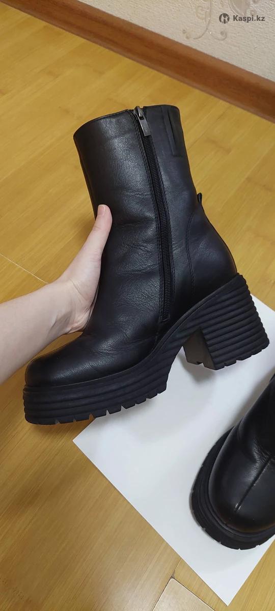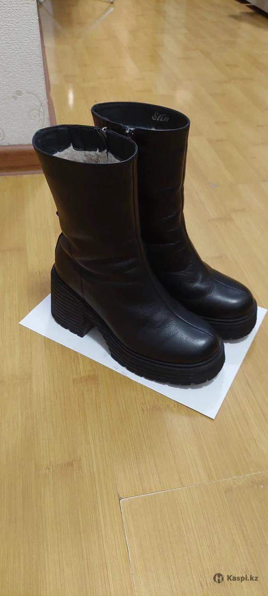 Черные кожаные сапоги на небольшом каблуке. Носила 6-7 раз. Качество хорошее, теплые. Решила продать потому что не подходят под гардероб.