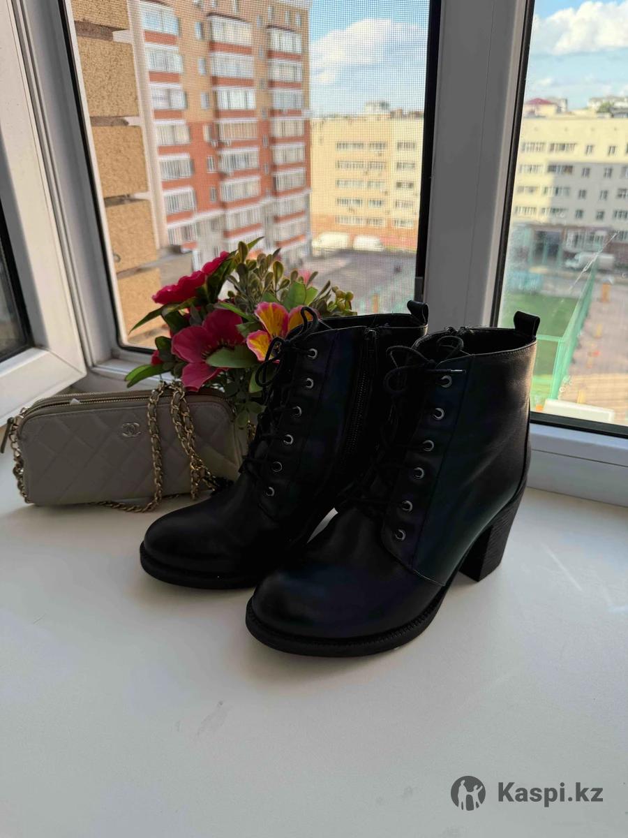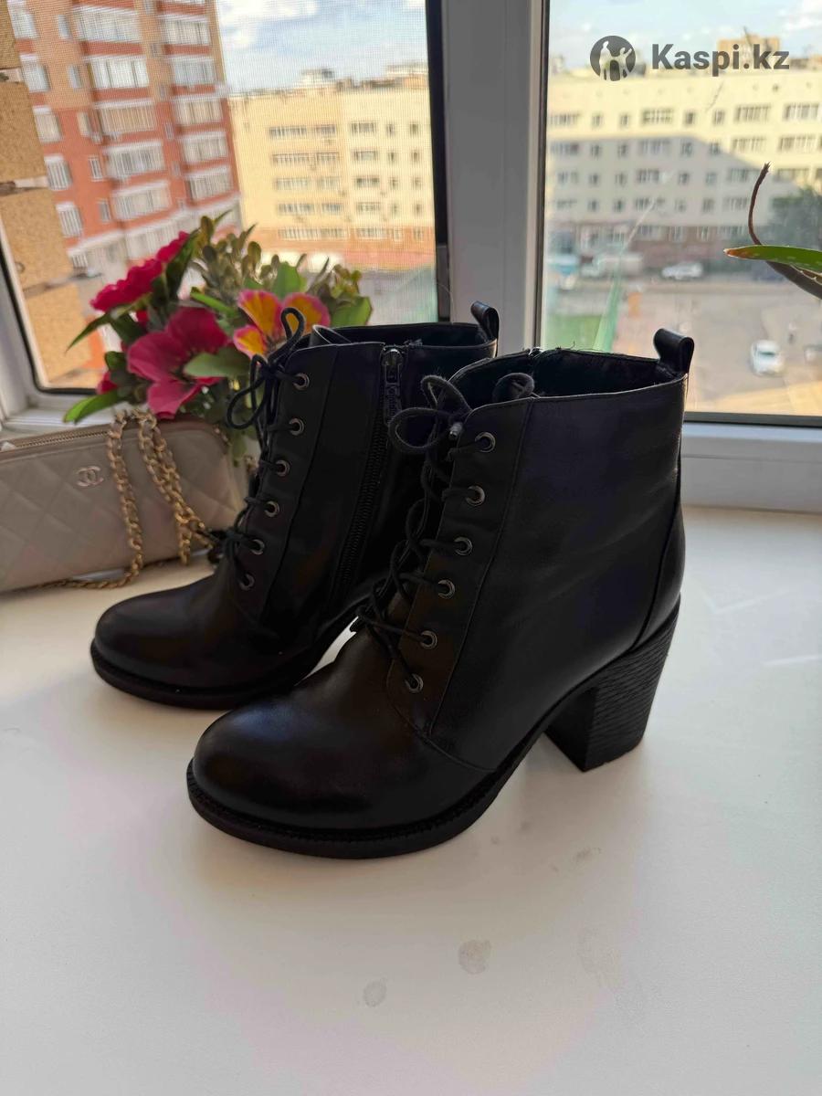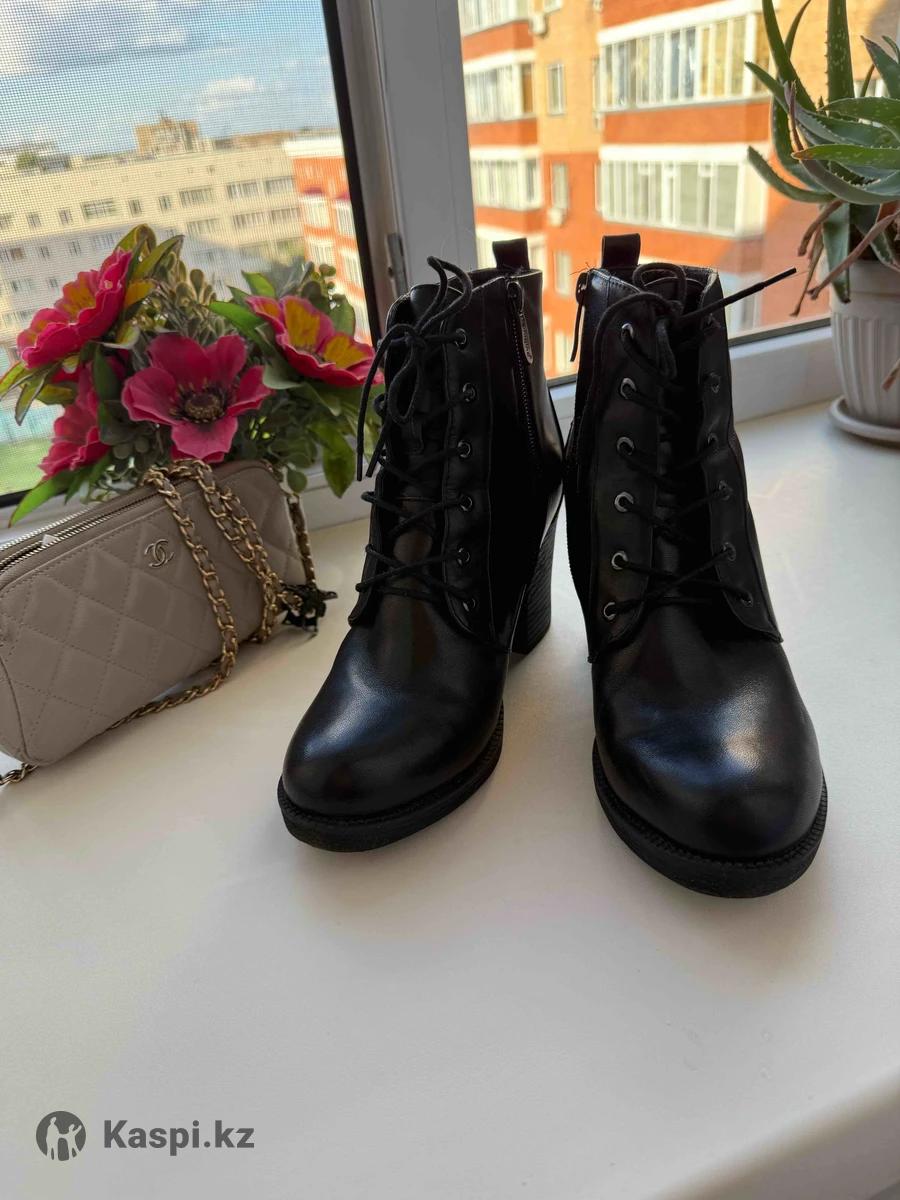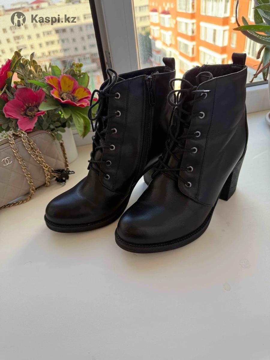Зимние кожаные ботильоны с натуральным мехом внутри. Очень теплые и удобные, состояние как новое. Шнуровка и боковая молния для удобства. Цена: 25 000 тг.