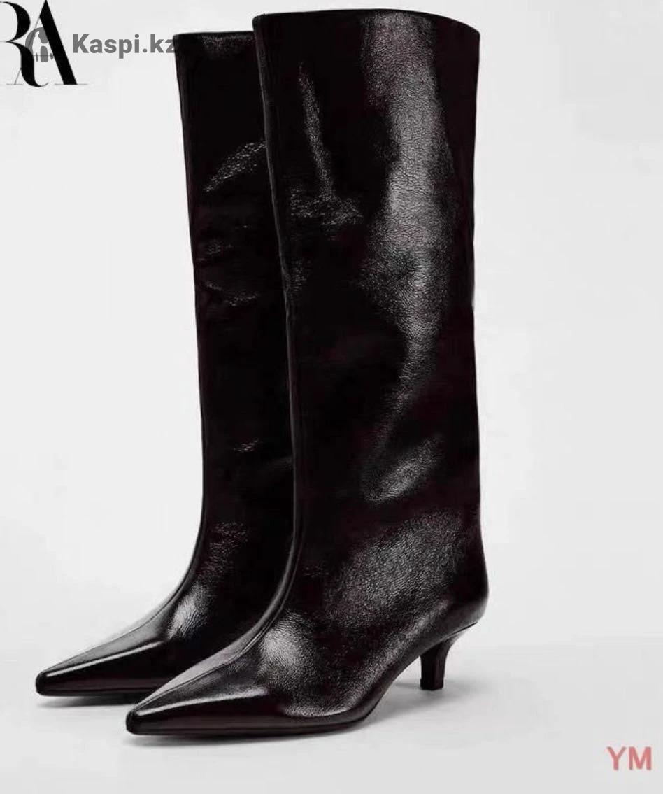 Сапоги осень, весна от фирмы Zara, в лакированной коже, в бордовом цвете, б/у в отличном состоянии, надевала 1-2 раза