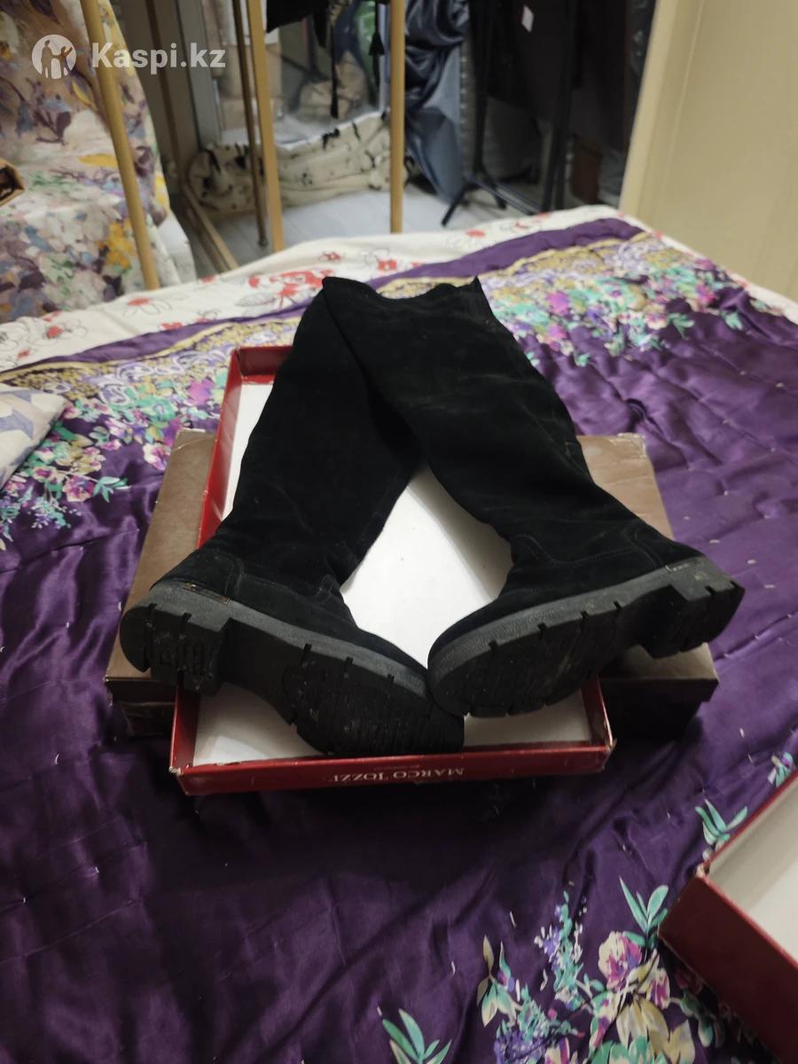 Обувь длинные натуральная Замша размер 38 - 39 Замок длиннный до конца Чуть есть каблук Внутри мех Евро Зима