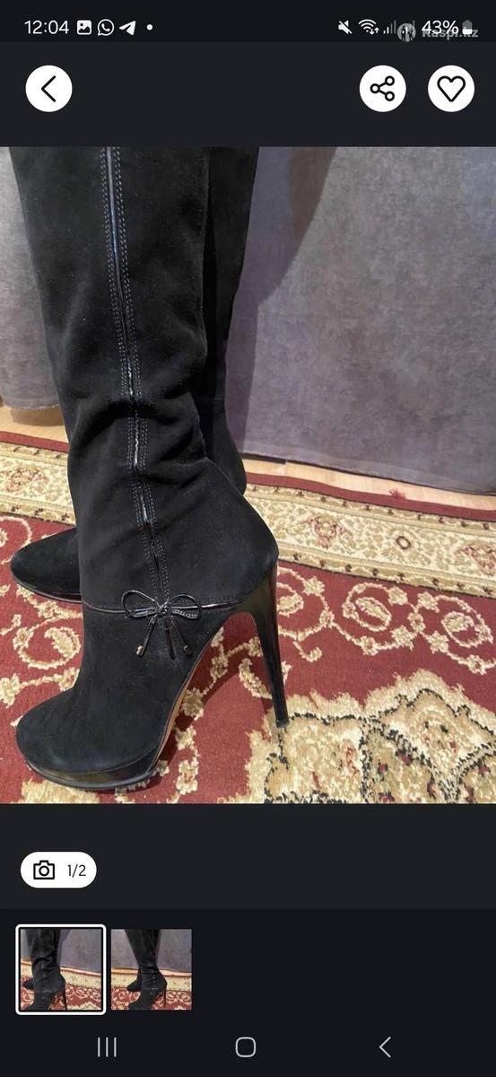 Продам сапоги женские.замша. очень удобные,каблук удобный за счет платформы.состояние отличное на фото искажается цвет, вообще цвет черный, одевала на той в ресторан 2 раза.сейчас продаю потому что стали узкие на ногу.имеются набойки родные.