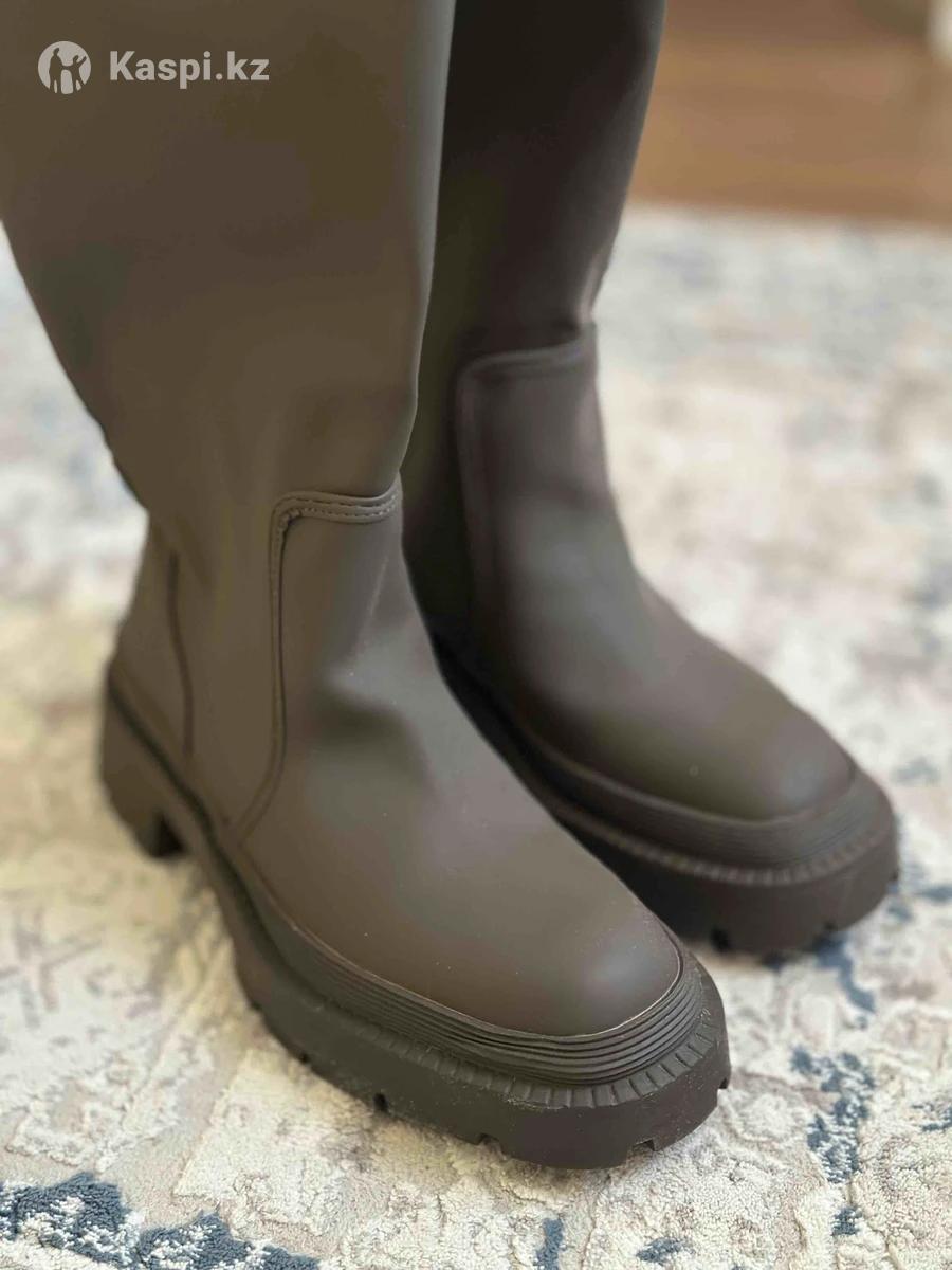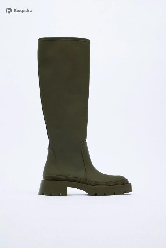 Прорезиненные сапоги на низком каблуке. Голенище высотой до колена. Рельефная подошва. Zara оригинал