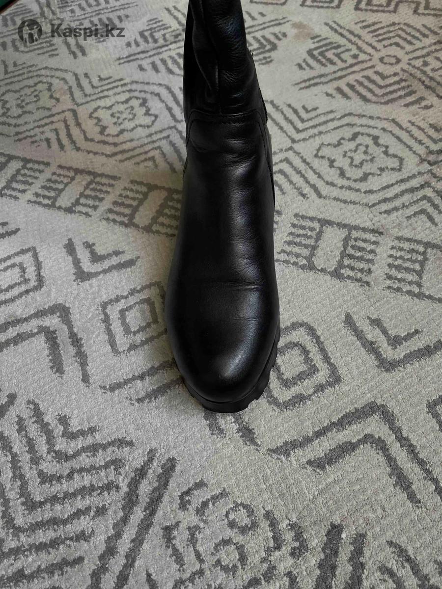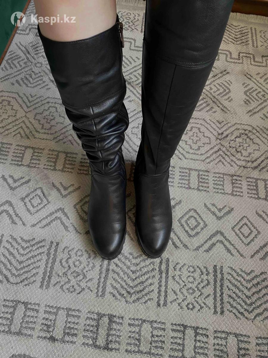 Женские кожаные сапоги с натуральным мехом (37, подойдет на 36) Продам сапоги из натуральной кожи, внутри натуральный мех. Носились очень мало, буквально несколько раз — оказались мне маленькие, поэтому и продаю. Размер 37, но модель очень узкая, лучше подойдет на 36. На ноге смотрятся аккуратно, визуально делают стопу маленькой. Покупала за 50 000 тг, отдам за 20 000 тг. Теплые, качественные, отличное состояние.