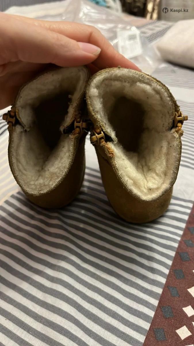 Размер 19-20, брендовые сапожки. Замшевые, внутри натуральная цигейка. Теплые и стильные. Мальчику или девочке круто будет смотреться) Есть еще рыжие внутри овчина, 20 рр. Стелька 12 см. Очень теплые.