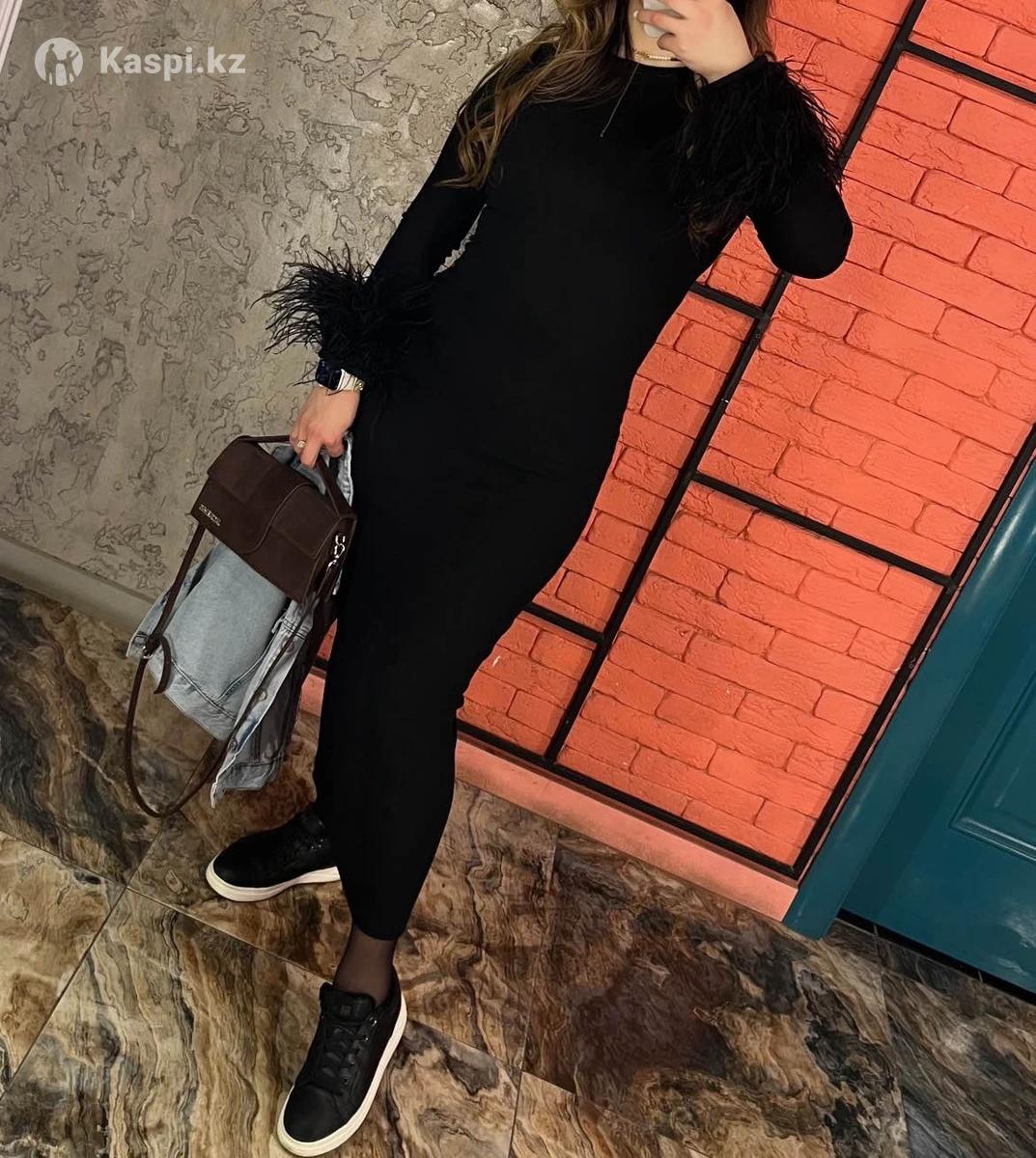 Платье с перьями, размер С ка, цвет черный