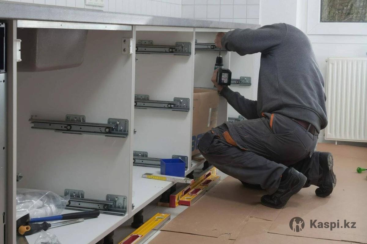 Почему стоит позвать нас на сборку: • Собираем крупную мебель из Kaspi: кухни, шкафы-купе, гардеробные, стенки, детские. Всё, что не влезает в «сбору сам». • Кухни – наш конёк. Точно подгоним фасады, выровняем столешницу, подключим технику. Без перекосов и нервов. • Доведём мебель до идеала: выровняем, укрепим, заменим слабую фурнитуру на Blum. Дверцы закрываются мягко, ящики ездят плавно. • Цены честные. Платите только за аккуратную, профессиональную работу.