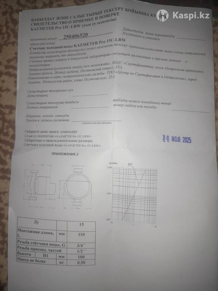 Счётчик диаметр 15. Находится в Таразе есть доставка