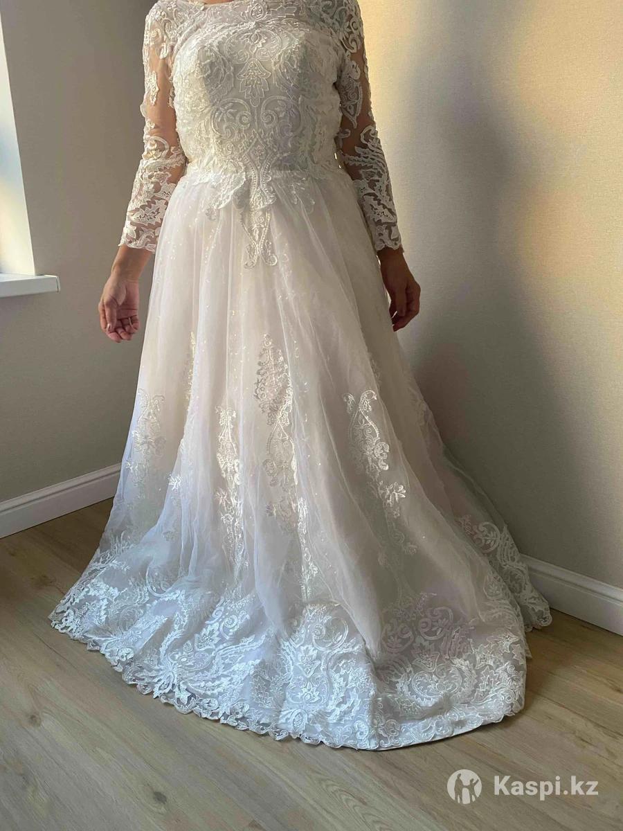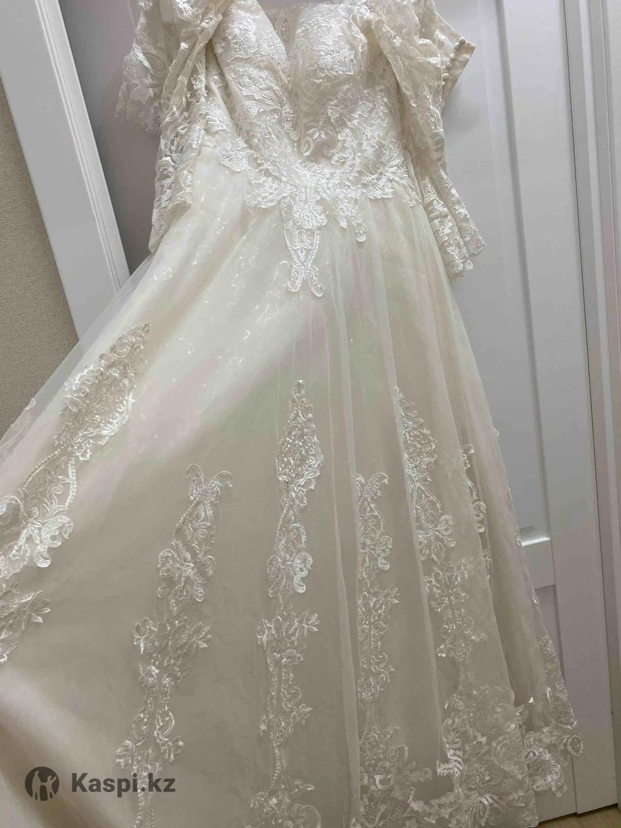 Сдам свадебное платье со шлейфом, размер 42-46 , есть завязка со спины, с верху кружевное , красивое , шлейф съемный