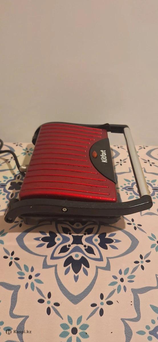 Kitfort Panini Maker КТ-1609, красная Подходит под два тестовых хлеба. Один режим мощности. кнопок и регуляторов нет Мощность достаточная чтобы пожарить небольшой кусок мяса. можно поджарить хлеб, сосиски-колбаски, наггетсы и блинчики Прижим горизонтальный. классная техника. состояние хорошее. продажа по причине переезда