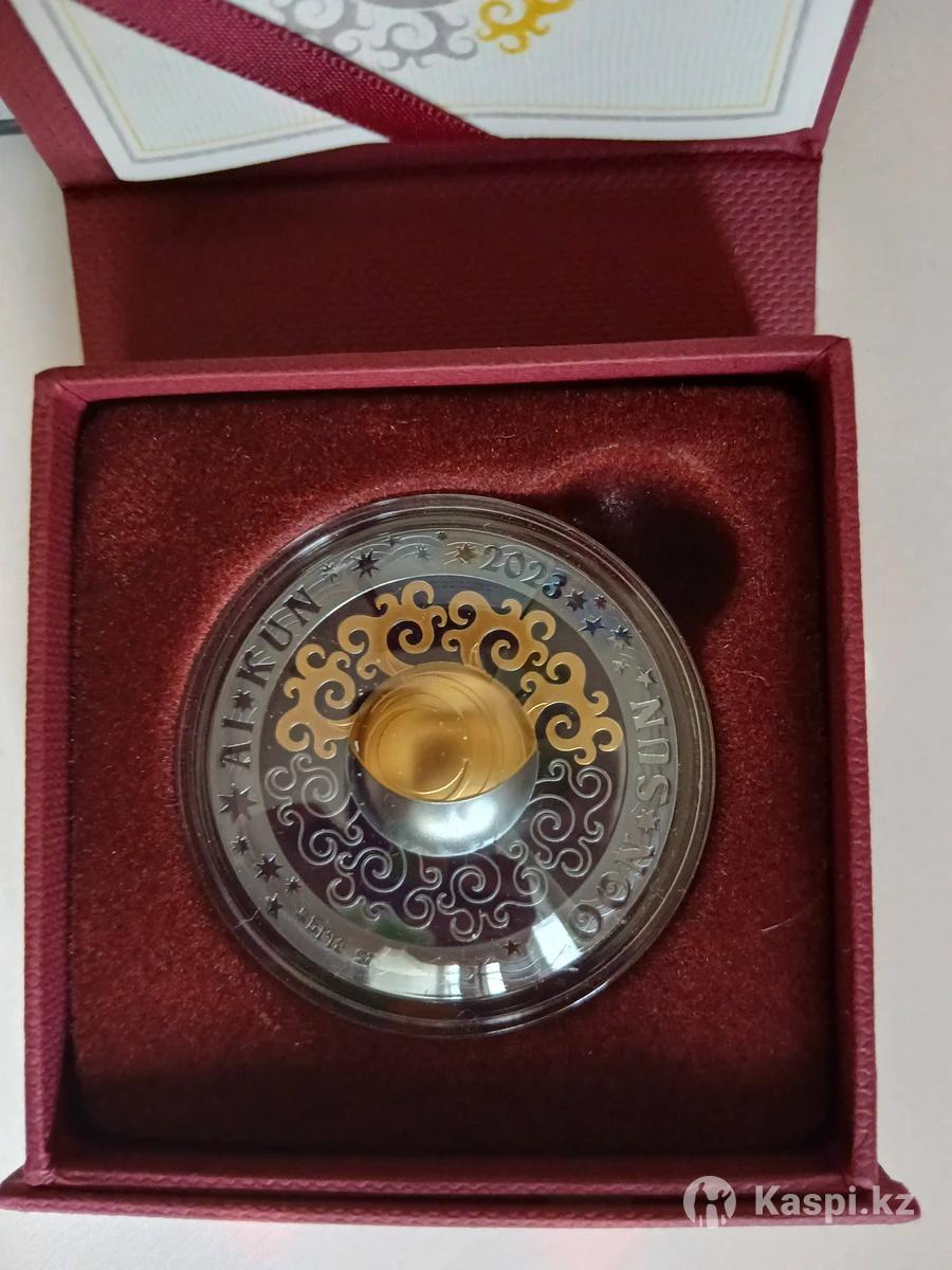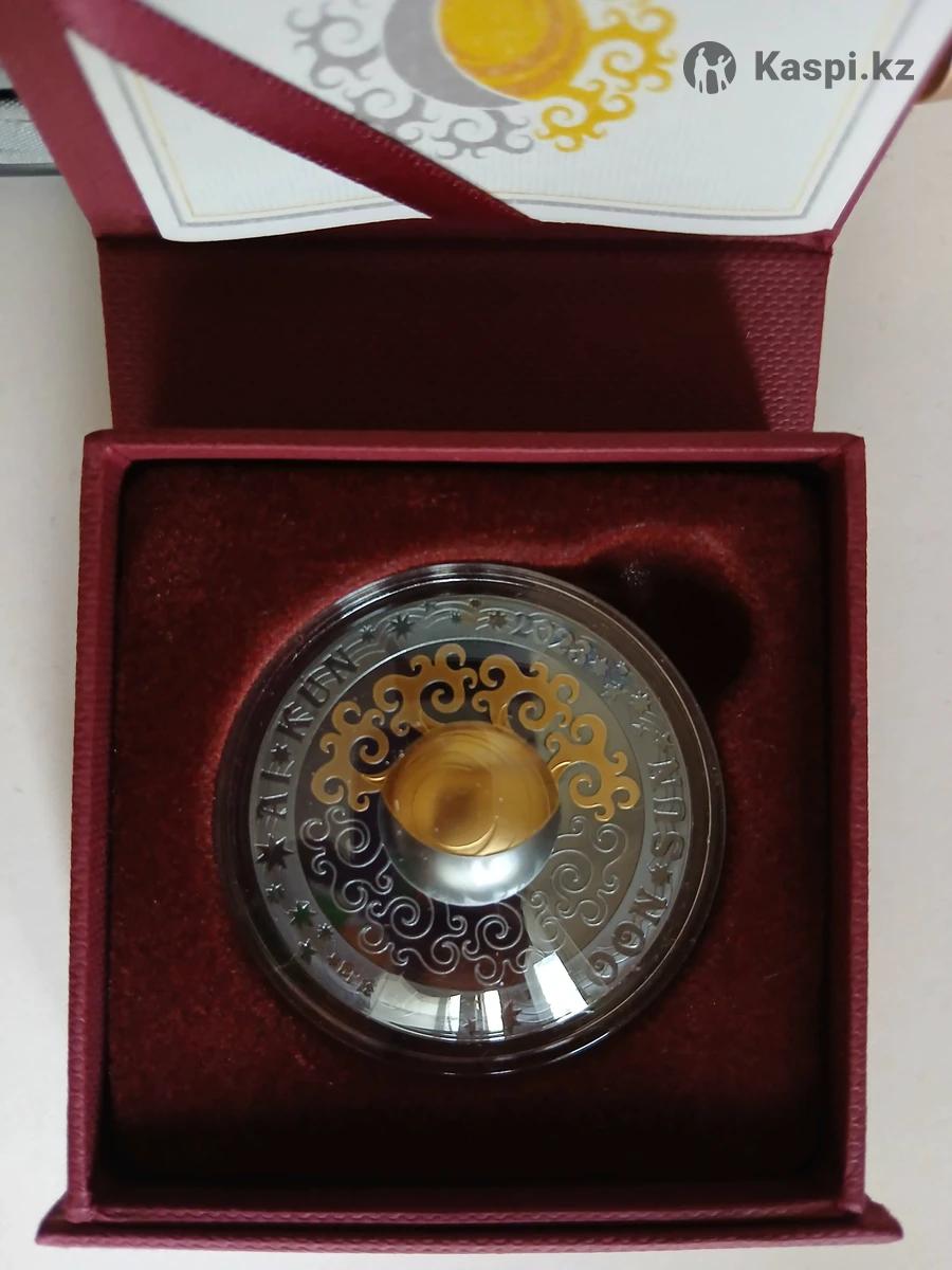 Монета "Солнце. Луна" - "" 500 тенге Казахстан (Серебро 925 + позолота) 3D СОЛНЦЕ.ЛУНА это пятая монета серии Магические символы и, как вся серия, имеет свои особенности чеканки и глубокий смысл. Реверс монеты имеет выгнутое объемное изображение в виде полусферы, на которой изображены Луна и Солнце. Монета отчеканена в качестве black-proof, что означает наличие матового изображения на зеркальном фоне, а сама поверхность монеты имеет темное патинированное покрытие, что очень выигрышно смотрится в совокупности с позолотой, которая есть на части изображения. Капсула у монеты имеет необычную выгнутую форму с одной стороны, как полусфера. Данный прием применяется впервые при чеканки и упаковке монет Казахстана! В основе дизайна заложено понятие единства противоположностей у кочевников. Солнце олицетворяет решительность и активность, а луна является символом умиротворения и творчества. Монета продается в капсуле, коробочке с сертификатом качества. Прекрасный вариант для коллекции и в подарок практически к любому поводу!