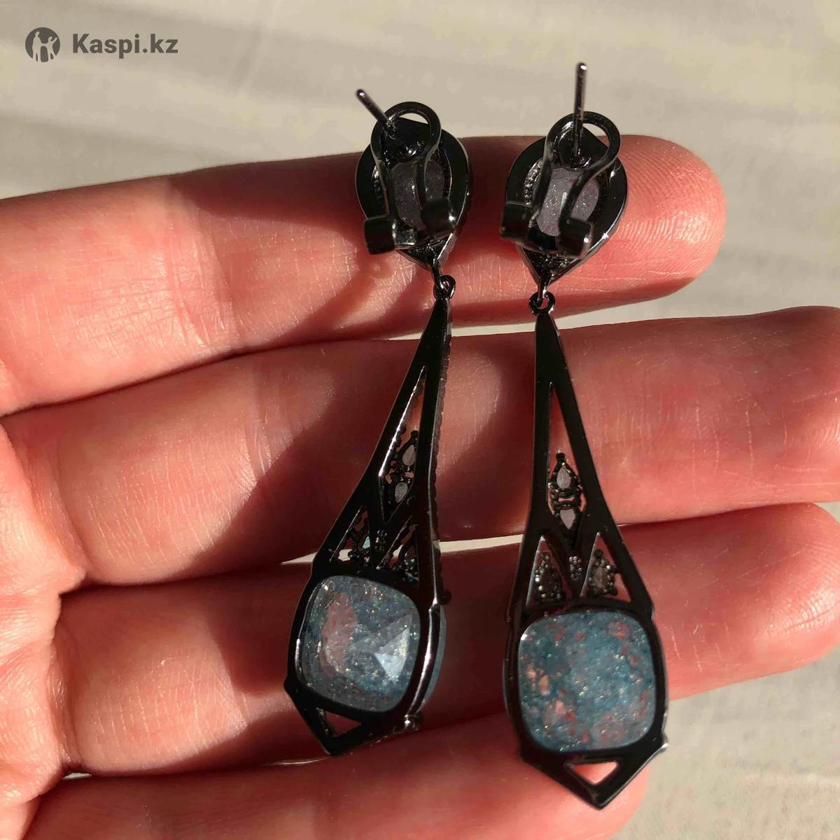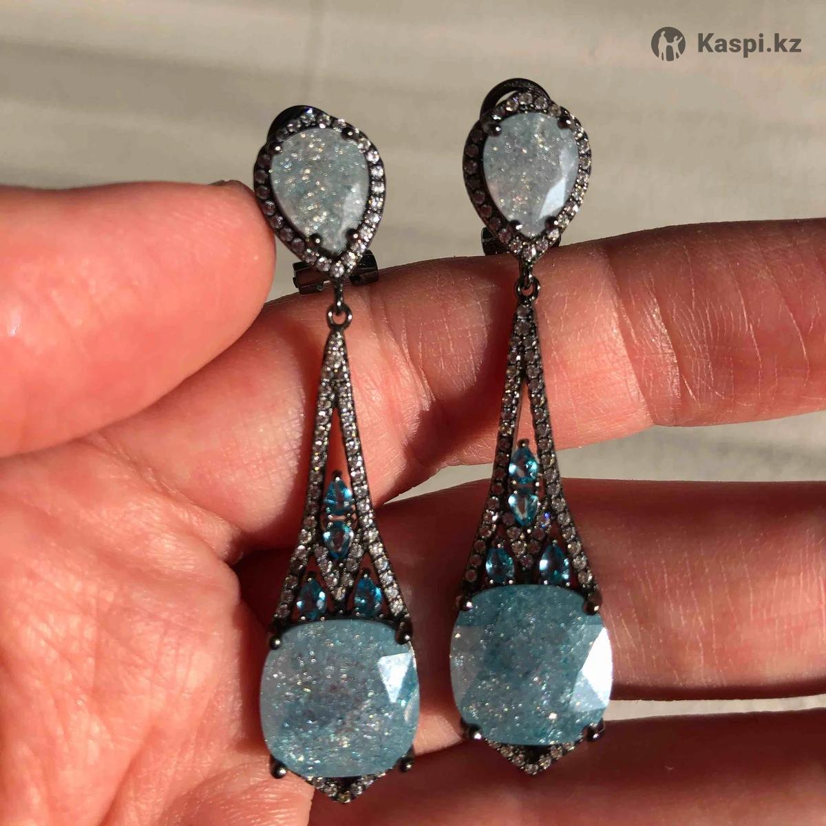 Серьги серебряные с камнем циркон голубого цвета. Новые.