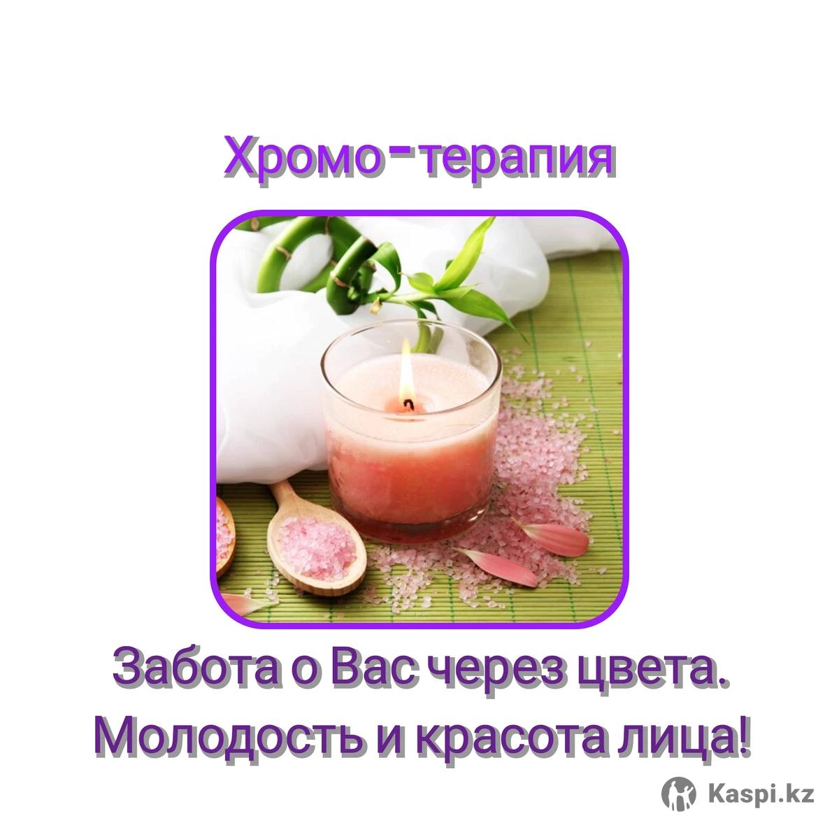 Подарочный сертификат с использованием Хромо-терапии (забота через цвета) 《Молодость и красота лица》 0) Витаминизированная вода с арома-маслами на лицо с успокаивающим эффектом 1) Демакияж 2) Увлажняющая сыворотка вокруг глаз 3) Очищающая маска из трав 4) Дарсонваль и массаж головы 5) Ультразвуковая чистка лица 6) Питательная сыворотка вокруг глаз 7) Увлажняющая маска 8) Хромо-терапия + микромассаж лица 9) Питательная маска + массаж палочками из камня 10) Защитная крем-маска 11) Парафино-терария рук 12) Ароматный чай Продолжительность процедуры до 120 минут. Стоимость сертификата: 24.000 тенге. При единовременной покупки сразу от 3-х сертификатов и более , стоимость 20.000 тенге. Предварительная запись обязательна за 5-7 дней заранее.