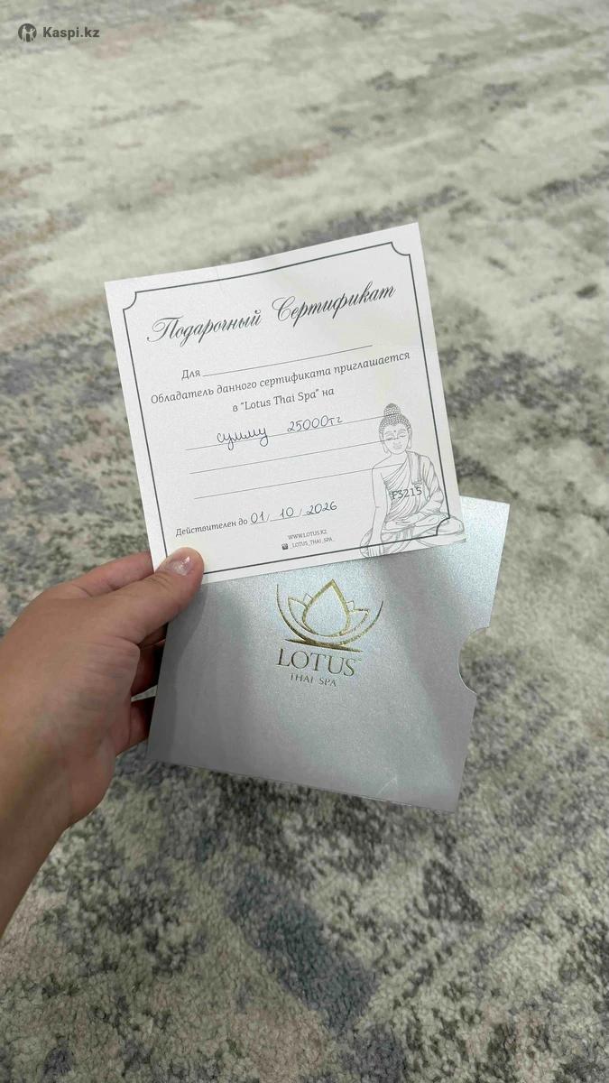 Продам подарочный сертификат в Lotus Thai SPA номиналом в 25.000, отдам за 15.000