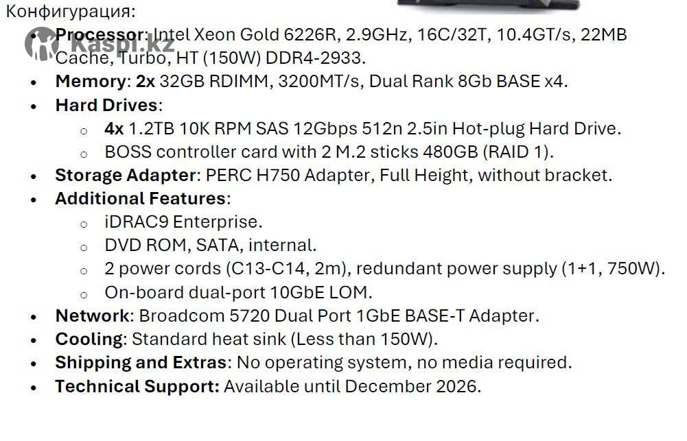 Сервер Dell PowerEdge T640. В наличии несколько. Конфигурация на фото. Поддержка от производителя до декабря 2026 г.