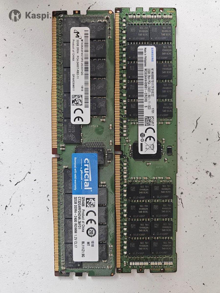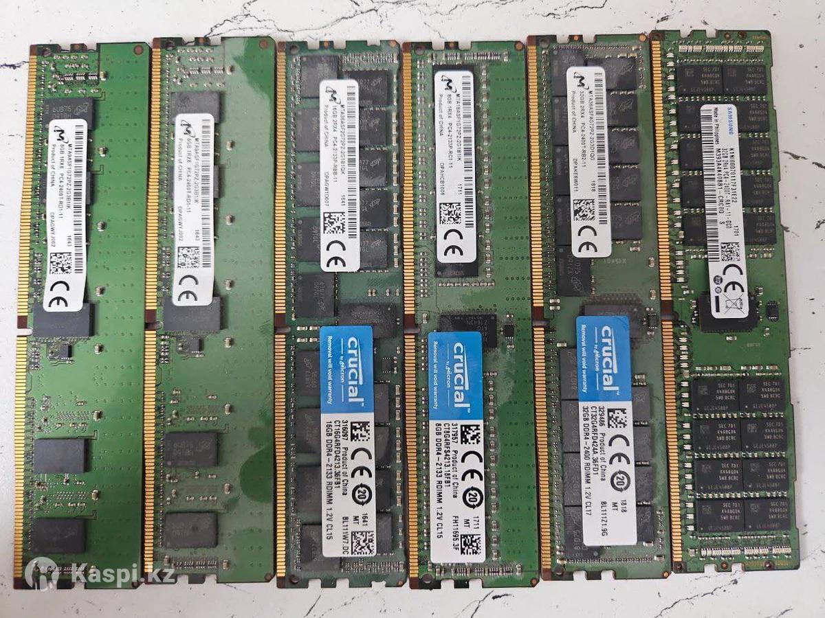 Серверная память DDR4 ECC В продаже серверная оперативная память: 1) 32GB DDR4 ECC RDIMM 2400 2шт 1шт 65тыс тг, комплект 120тыс тг. 2) 32GB DDR4 ECC RDIMM 2666 4шт 1шт 70тыс тг, комплект 260 тыс тг. 3) 32GB DDR4 ECC RDIMM 3200 2шт 1шт 75тыс тг, комплект 140тыс тг. 4) 16GB DDR4 ECC RDIMM 2133 1шт 25 тыс тг, +8гб 30тыс тг комплект (ниже 5 пункт) 5) 8GB DDR4 ECC RDIMM 2133 1шт 10тыс тг. 6) 8GB DDR4 ECC RDIMM 2400 2шт комплект 25тыс тг. 7) обычный 4GB DDR4 2400 GEIL 5тыс тг. Подходит для серверов: Dell / HP / Supermicro / Lenovo / Xeon, китайские платы x99 Полностью рабочие, снять с рабочего сервера.